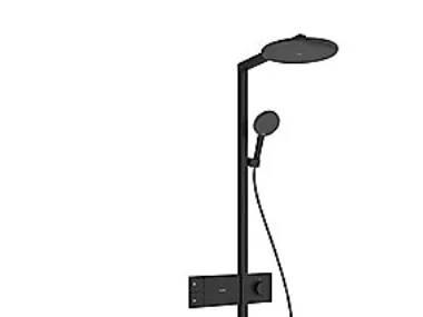 . består af: hovedbruser, håndbruser, glider, brusetermostat, bruserslange, bruserstang . hovedbruser Raindance Alive S 300 1jet. bruserstørrelse på hovedbruser: 300 mm. stråletype i hovedbruser: Rain, eller PowderRain. Spray Type Switch: tillader, at stråletyper kan ændres selv efter installation, Rain (forudindstillet), skift til PowderRain ved montering eller skift nemt på et senere tidspunkt . stråleskivens overflade: grafit . gennemstrømningsregulator: 8 l/min (med mulige tolerancer -20 %) . gennemstrømningsmængde PowderRain-stråle ved 3 bar: 7 l/min . stråletype i håndbruser: RainAir, PowderRain, Massagestråle . gennemstrømningsmængde for håndbruser ved 3 bar: 7 l/min . maks. gennemstrømningsmængde for showerpipe ved 3 bar: 7 l/min. min. driftstryk: 1,9 bar . maks. driftstryk: 10 bar . DropGuard reducerer dryp til blot få sekunder, efter bruseren er lukket. praktisk valg af stråletype via Select-knap på håndbruseren. kugleled: vinkeljusterbar hovedbruser . stråleskive kan tages af i forbindelse med rengøring. designafdækningen kan nemt fjernes uden redskaber ved rengøring. designafdækningens overflade: grafit. højdejusterbar glider som kører nemt. termostat ShowerSelect Comfort E. materiale afdækning til termostat, greb og Select-knapper: metal . Sikkerhedsspærre ved 40 °C. justerbar varmtvandsbegrænsning. komfortabelt at åbne/lukke for vandet med stor Select-betjeningsplade. samtidig brug af flere udtag. monteringstype: frembygget montering . tilslutningsgevind: G ½ . centerafstand 150 ± 12 mm. sikret mod tilbageløb. Designflex tekstilbruserslange, modstandsdygtig over for vand og med vandafvisende materiale, unikt design med flerfarvet flettet garn. 2 udtag. LEED: udgangspunkt - maks. 9,5 l/min . EU-taksonomi: maks. 8 l/min - Do No Significant Harm (DNSH) . BREEAM: niveau 2 - maks. 8,0 l/min