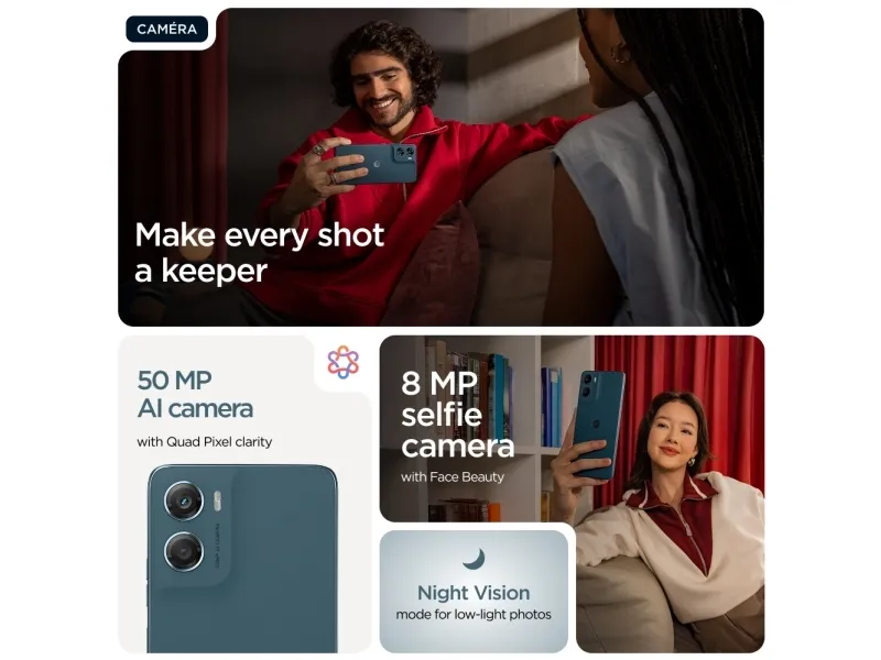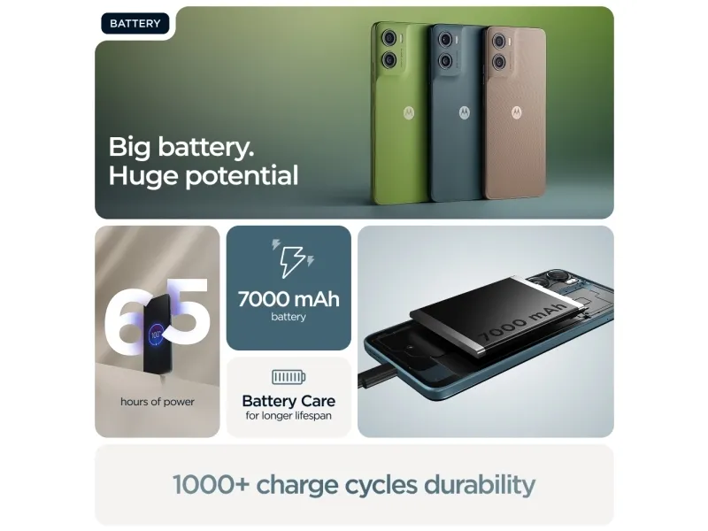 The Motorola Moto G06 power combines a 7000 mAh battery with endurance, offering up to 1200 charge cycles for long-lasting performance. This smartphone features a 6.88-inch LCD display, delivering HD+ resolution at 1640 x 720 pixels and a refresh rate of 120 Hz for fluid visuals. Its Helio G81 Extreme processor, paired with 8-core technology, ensures efficient multitasking and smooth operation throughout the day. Photography enthusiasts can enjoy the 50 megapixel rear camera equipped with Quad Pixel technology for impressive images. The front-facing 8 megapixel camera supports various modes, including portrait and night vision, enhancing your selfies and video calls. Additionally, the built-in Google Assistant, along with dual-SIM support, and connectivity options like NFC and Bluetooth 6.0 make this device versatile for everyday use.