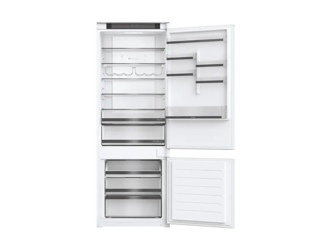 Brand- Haier. Model- HBQW5719E. Height- 193.5 cm. Width- 69 cm. Depth- 54.5 cm. Colour- White. Refrigerator type- Freezer in the lower part. Energy Efficiency Class- E. Total refrigerator capacity- 364 l. Noise level- 33 dB. Automatic defrost- Yes. Cooling system in the refrigerator- No frost. Cooling system in the freezer- No frost. Changeable door direction- Yes. Screen- No. Type of lighting fixture- LED. Thermostat- Yes. Thermostat type- Mechanical. Safe time in case of power failure- 10 h. Control- Mechanical. Mandatory warranty- 24 mo.