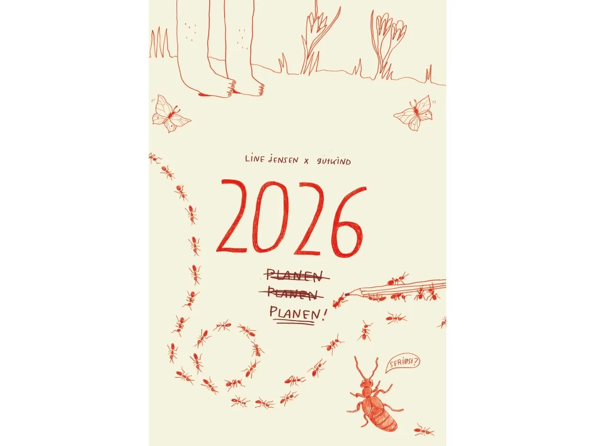 Line Jensens populære vægkalender kommer her i en 2026-udgave med smukke illustrationer og separat stickerark. Kalenderen er i højformat (28x42 cm) med spiralophængning og god plads til egne noter.