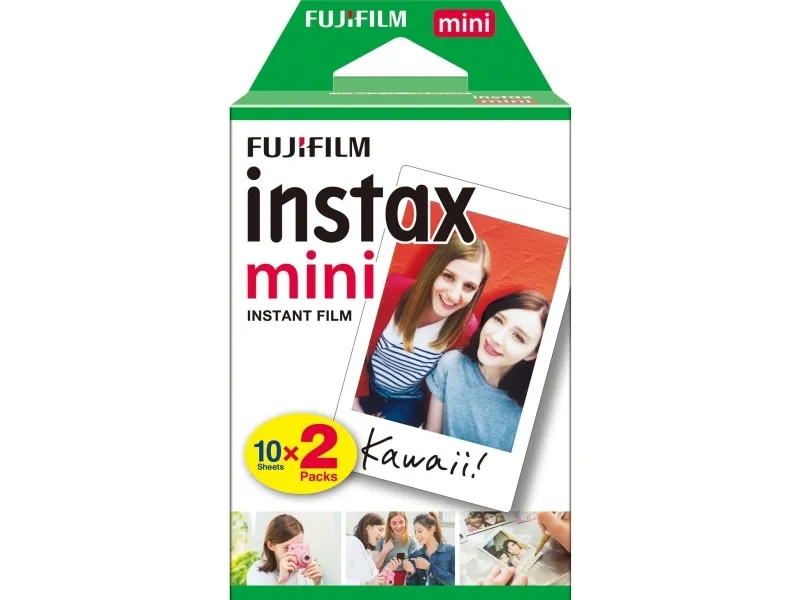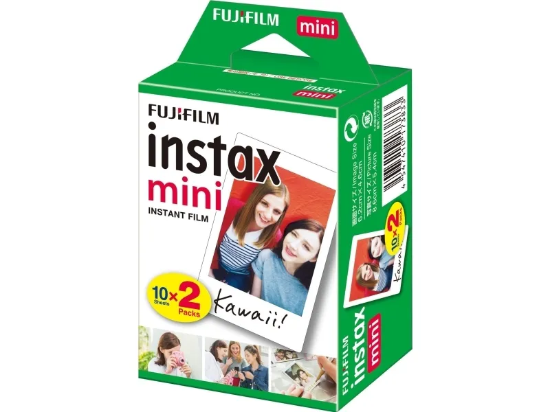 1x2 Fujifilm Instax Film Mini Filmformat 54 (B) x 86 (H) mm · Billedstørrelse 46 (B) x 62 (H) mm · 10 udskrifter pr. pakke. Instax mini-film er egnet til alle Instax Minikameraer / Instax Share SP-1 printere og kommer i en praktisk patron. Den giver betagende billeder, som du straks kan sætte i en lille fotoramme, pungen eller håndtasken. Instax film giver skarpe, klare, levende farver og naturlige hudtoner Høj stabilitet, selv under ekstreme temperaturer fra -5° til +40 °C. 10 udskrifter hver gang (dobbeltpakke) Egnet til alle Instax Minikameraer / Instax Share SP-1 printere · til hver 10 udskrifter (dobbeltpakke) · filmformat 54 (B) x 86 (H) mm · billedstørrelse 46 (B) x 62 (H) mm.