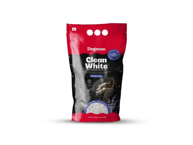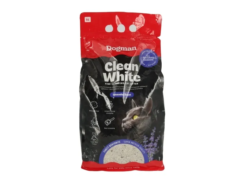 Kattsand av finaste bentonitlera med aktivt kol och doft av lavendel. Kornstorlek 0,5-1,5mm.
