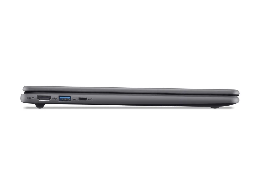 The Acer Chromebook 514 is a device designed to meet the needs of modern users, whether for work or play. It features a 14-inch WUXGA display with a native resolution of 1920 x 1200, providing crisp visuals and a pleasing viewing experience. The IPS technology ensures vibrant color reproduction, while the matte surface reduces glare, making it suitable for various lighting conditions. With a lightweight build and a sophisticated design, this Chromebook is easily portable, perfect for users on the go. Equipped with a quad-core Intel N-series processor, the Chromebook 514 offers reliable performance for multitasking and streaming. The 4 GB of LPDDR5 RAM ensures smooth operation, while the 64 GB SSD provides ample storage space for applications and files. Connectivity options include dual USB-C 3.2 ports with Power Delivery, HDMI, and an audio combo jack, allowing for flexible use with various peripherals. The device also supports Wi-Fi 6E and Bluetooth 5.3, ensuring fast and reliable wireless connections for seamless online experiences.