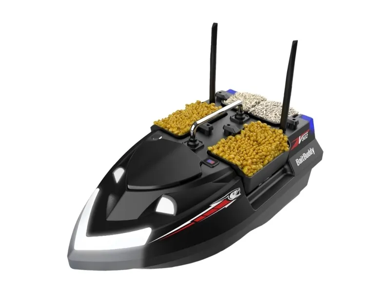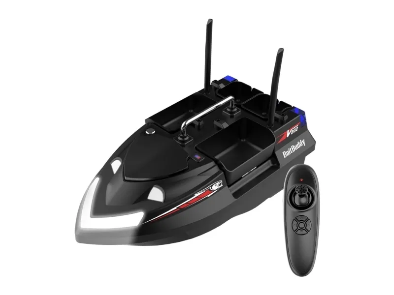 Flytec V802 is a bait boat that combines large capacity, precise control and stable operation even in difficult conditions. It is equipped with four independent chambers with a total capacity of up to 3 kg, allowing a variety of baiting in several places at the same time. Dual antennas, a gyroscopic system and powerful motors guarantee reliability and full control over the route, even in wind and waves.
