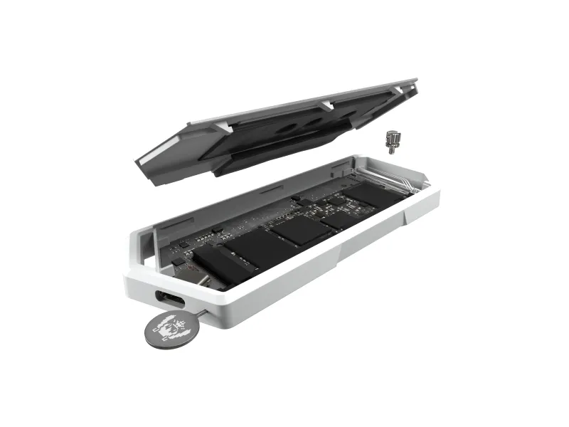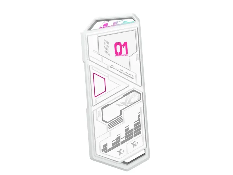 ROG Strix Arion is an SSD enclosure that fits an M.2 PCIe NVM Express SSD with a 2230/2242/2260/2280 form factor and features USB-C 3.2 Gen 2 connectivity to deliver data transfer speeds of up to 10 Gbps. Its sleek aluminum alloy case features thermal pads for excellent heat dissipation, exclusive ASUS Aura Sync lighting effects, and a protective holder with an R-hook that altogether make ROG Strix Arion a high-performance, mobile storage solution.
