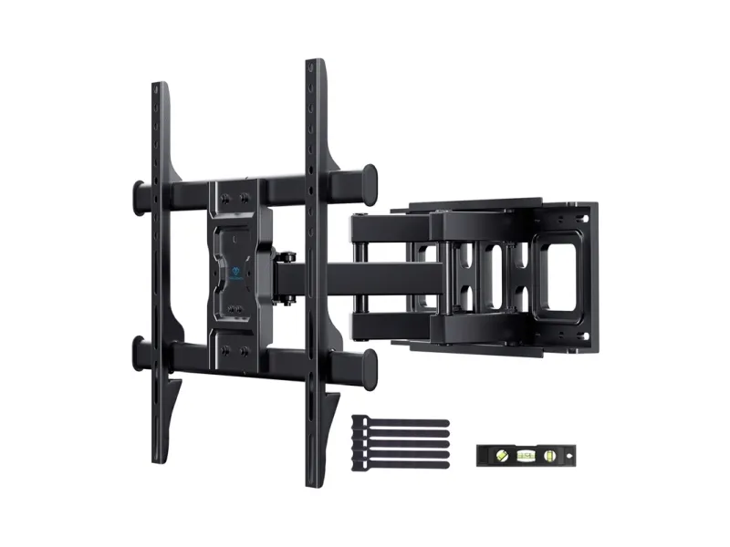 The Perlesmith PSPILFK1 mount allows for smooth viewing angle adjustment with screen tilt from +5° to -15° and horizontal rotation of ±60°. Extension up to 376 mm from the wall provides enough flexibility to adjust the distance, and the ±3° leveling function allows you to correct the leveling even after installation.