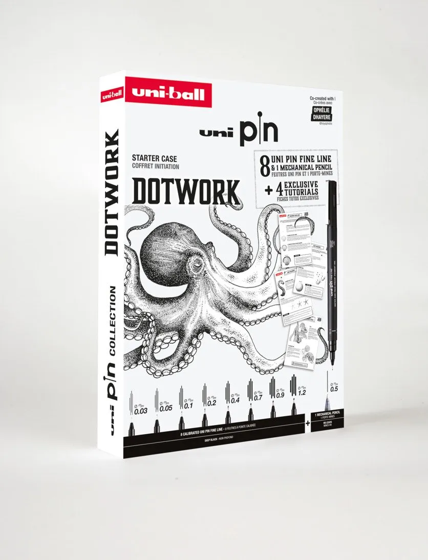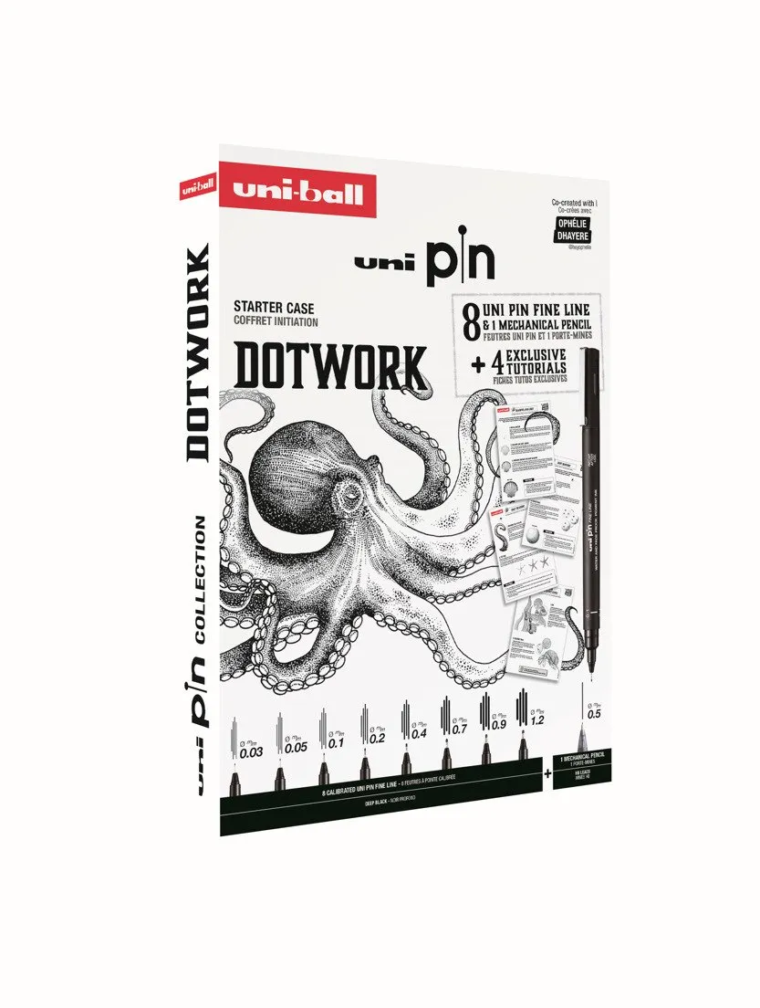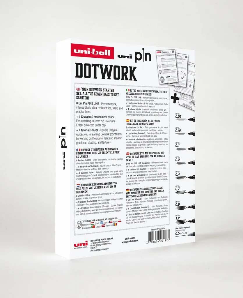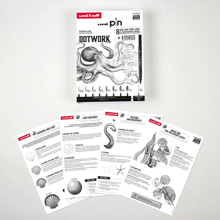 Uni Pin Dotwork Box - Gaveæske med øvelser ( indeholder 8x uni pin + 1 pencil 0,5mm)