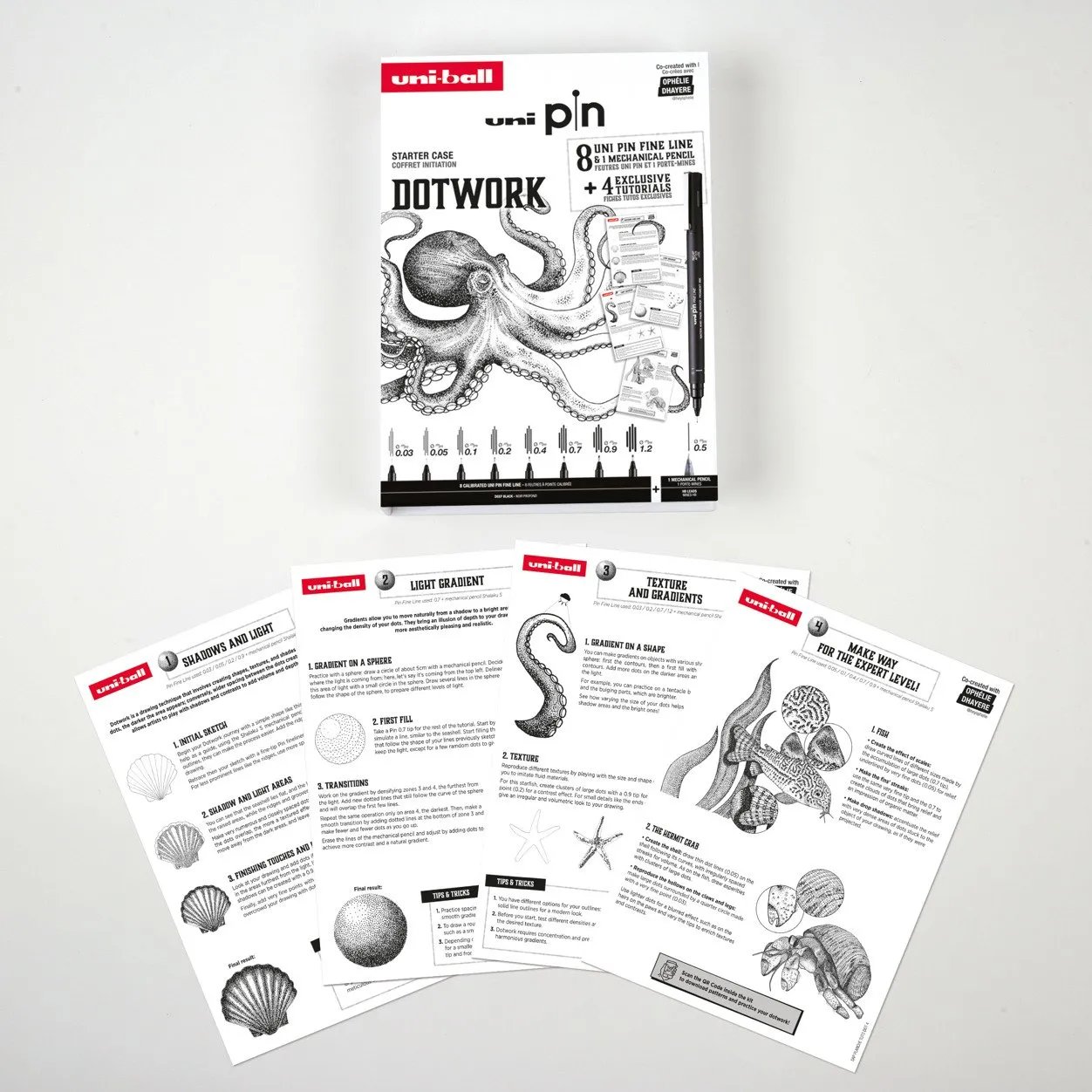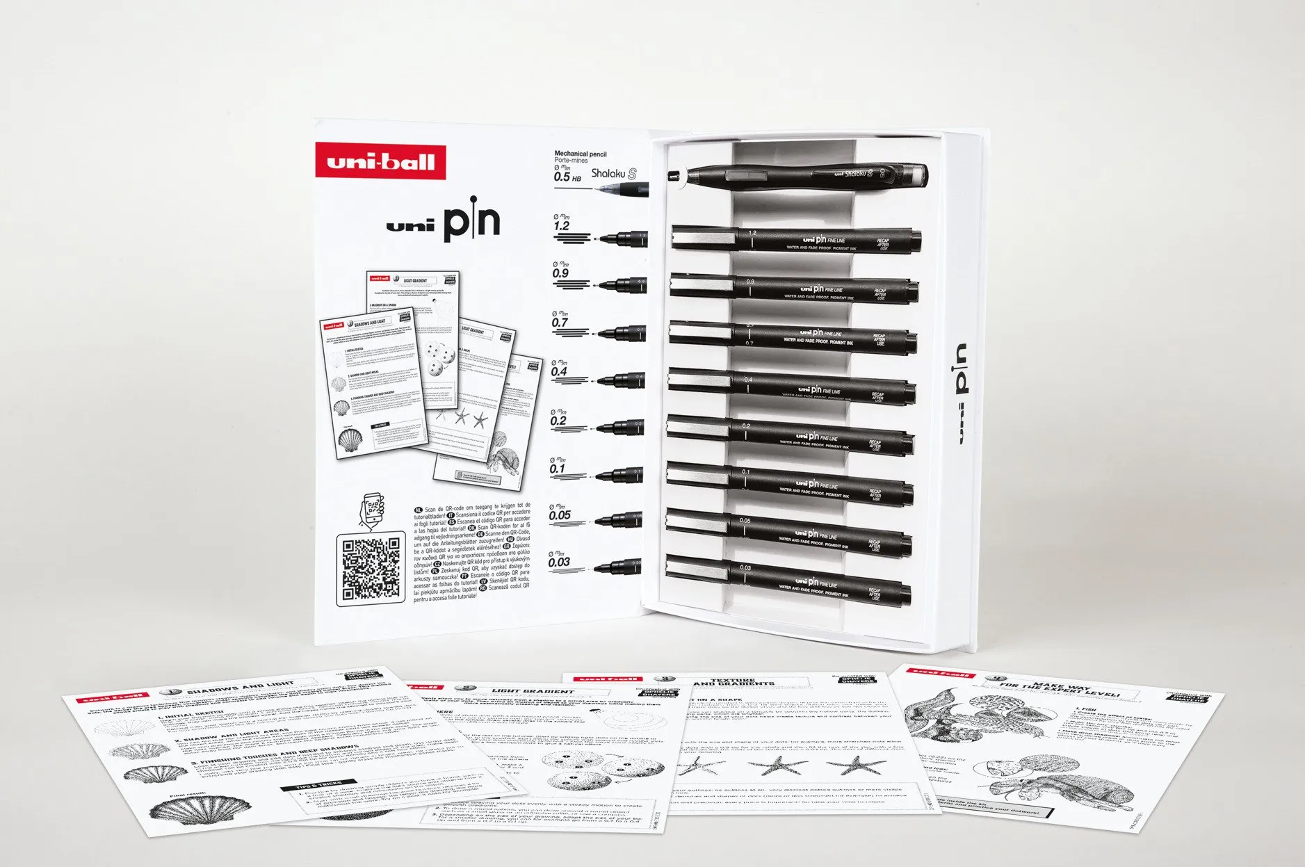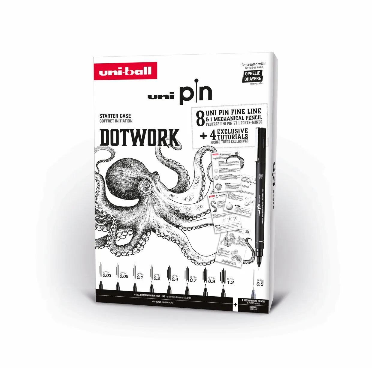 Uni Pin Dotwork Box - Gaveæske med øvelser ( indeholder 8x uni pin + 1 pencil 0,5mm)