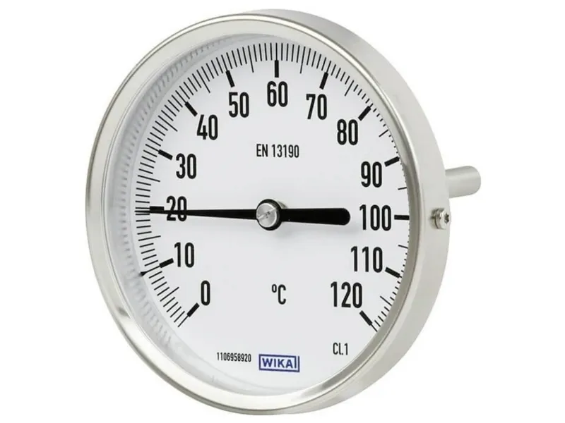 BIM-Therm type 52, industriAusf CL 1 A52.100/1, -30...+50 , 063x8mm Bimetal-termometer, til industrielle anvendelser:A52Ltekniske data efter datablad: TM 52.01nøjagtighedsklasse: CL. 1 i henhold til en 13190kabinet: CrNi-ståldykskaftet: CrNi-stål 1.4571Type: A52.100, nominel størrelse 100, tilslutningsposition Tilbagestillelsesform: 1, tilslutningsvisningsområde: -30 °C... +50 °C-procestilslutning: Glat, med krave til beskyttelsesrør (beskyttelsesrør til montering er påkrævet)dykketværsnit: 8 mmellængde L1: 63 mmsynsrude: Instrumentfladglabeskyttelsesklasse: IP 43logo: *WIKA*dykskaftet: CrNi-stål 1.4571