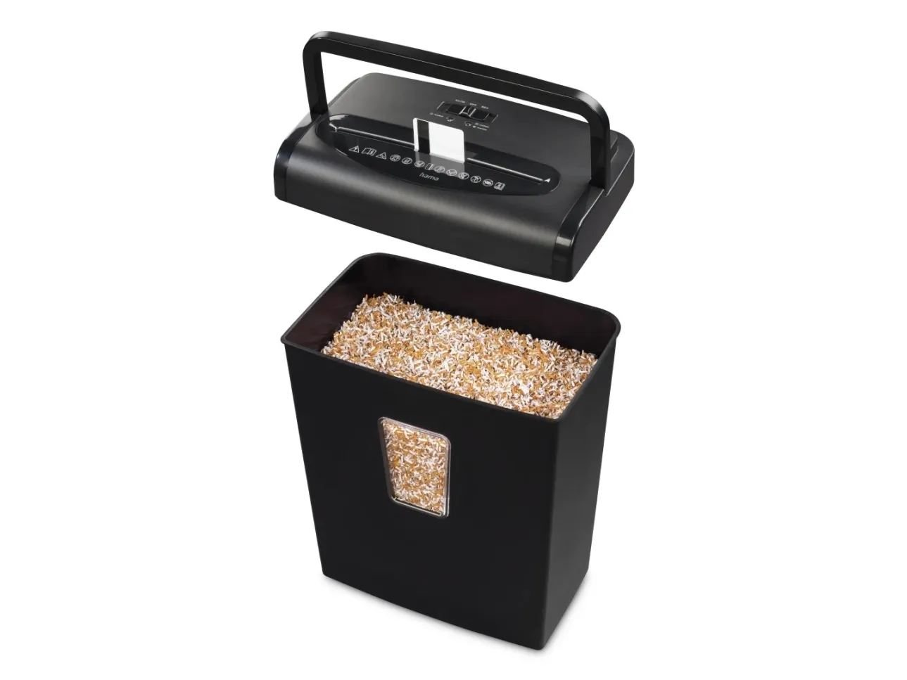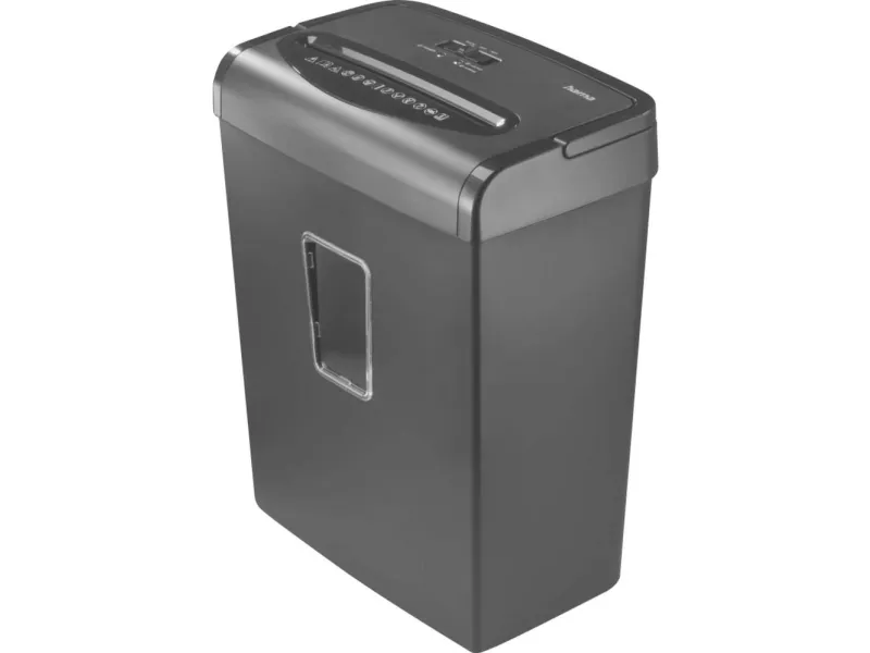 Hama Prime M80 makulator til mikroskæring 68 dB 22 cm sort Papirskrabere til brug derhjemme og på kontoret: Micro Cut-makulator til 8 ark din A4-papir (80 g/m²) i én arbejdsgang, hakker også plastikkort i papirindtræk, så særligt fortrolige og hemmelige data destrueres sikkert Automatisk start/stop-funktion: Skærevalse starter automatisk, så snart det hakkede materiale bliver tilført, og stopper, så snart nedskæringen er afsluttet, for mere komfort og mindre støj Papirmakulatorer med returfunktion: Særligt nyttig, hvis et hadet dokument skal løsnes igen ved hjælp af automatisk returløb-tast Beskyttelsesklasse 3: Den professionelle makulator sikrer en meget høj beskyttelse af særligt fortrolige og hemmelige data på papir (P5), magnetiske datamedier som legitimationskort (T5) og elektroniske datamedier som chipkort (E4) Selv bredt amerikansk letterformat komfortabelt og hurtigt skrabere: 220 mm indføring og 2 m/min skærehastighed Inklusive papirkurv (20 liter) med rude Med praktisk håndtag på målehovedet for bekvem tømning af opfangelsesbeholderen Nem håndtering via betjeningspanel: Til/AUTO, fra, returløb Och lettere betjening takket være de overskuelige funktions-LED'er: Power, Overload, overhead Sikkerhedsanordning forhindrer, at apparatet fungerer, så snart hovedet ikke er korrekt lagt ind i papirkurven Premium-kvalitet i kompakt format: Takket være skærebord i høj kvalitet og praktiske mål egner makulator sig til professionelt apparat på kontoret, i hjemmet eller på hjemmekontoret Private og kommercielle dokumenter: Personoplysninger og andre følsomme oplysninger bør omhyggeligt indsamles, inden de bortskaffes. Vores premium-dokumentmakulator med partikelskæring giver ikke svindlere en chance: Sådan redder du dokumenter og plastikkort uden besvær.