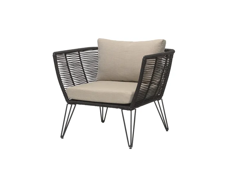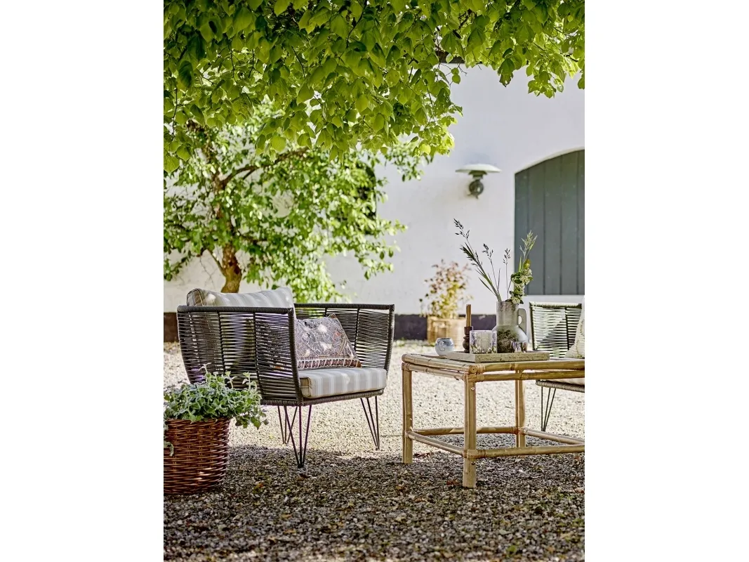 Mundo Loungestolen fra Bloomingville er lavet af pulverlakeret stål med sort polyesterreb håndvævet på stellet. Pudebetrækket er i en smuke lysebrun farve og er lavet af polyester, der kan vaskes ved 30 grader. Havestolen er egnet til alle udendørsområder, men ved at skærme stolen fra direkte sollys, vil stoffets farve samt stolens holdbarhed forlænges. Nyd en udendørsstol med høj komfort og bløde puder – perfekt til afslapning og hygge.