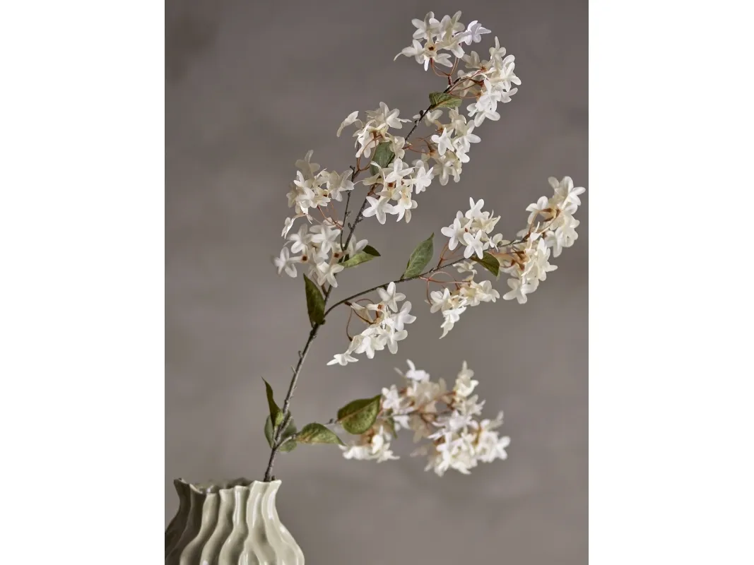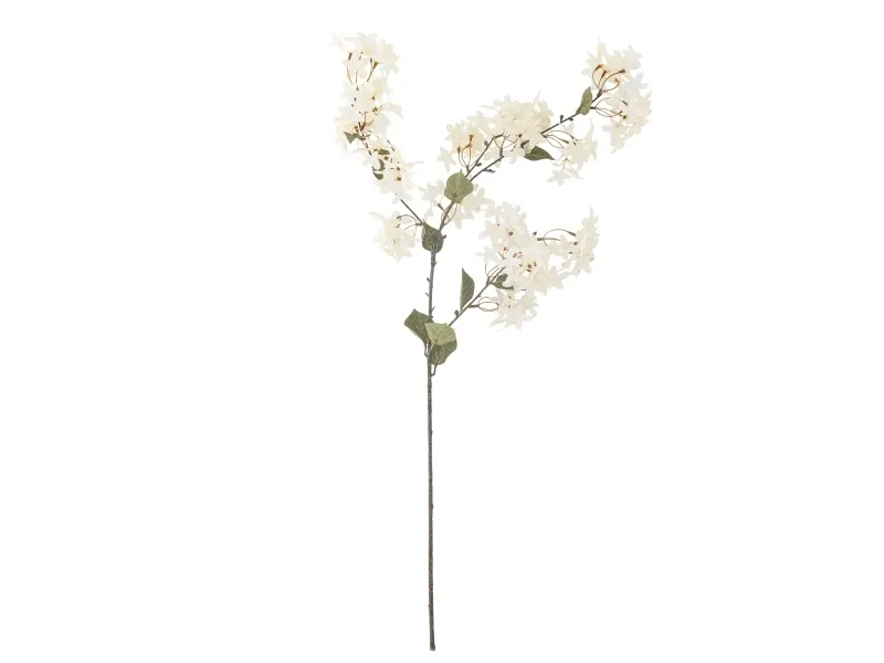 Myrtle Kunstig Stilk fra Bloomingville har lette, hvide blomster og grønne blade, som tilføjer et feminint touch til enhver indretning. Stilken kan nydes alene som et iøjnefaldende element i rummet eller kombineres med andre kunstige grene for at skabe en smuk buket. Før brug kan du med fordel forme stilken, for at frembringe dens naturlige udseende og tilpasse den til din personlige indretning.
