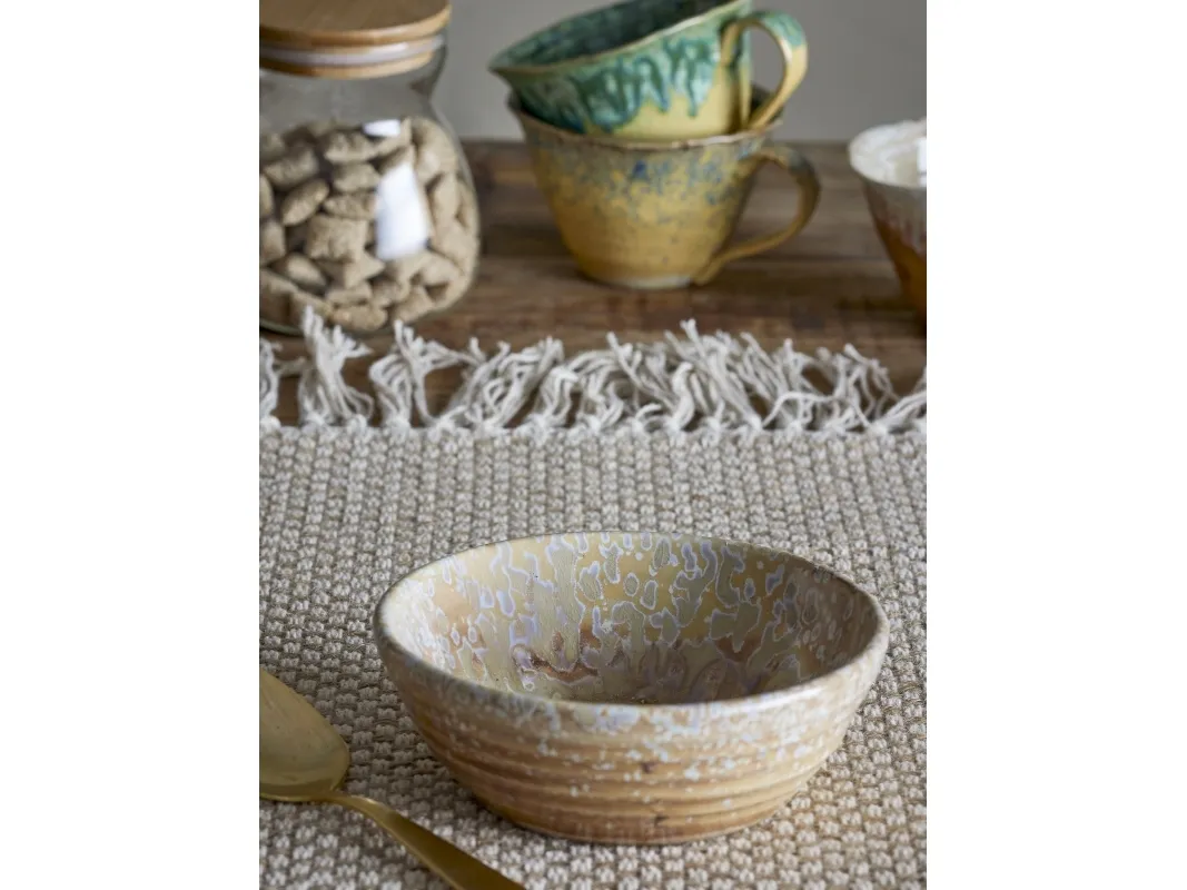 Milani Skålen fra Bloomingville er håndlavet og har en reaktiv glasur, der skaber unikke variationer i farver og mønstre, hvilket gør hver skål helt speciel. Glasuren i brunlige nuancer har en perlemorsagtig finish, der fremhæver farvedybden smukt. Skålen er et iøjnefaldende element, perfekt til både servering og som dekorativt element i stuen eller soveværelset.