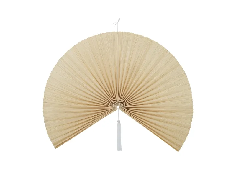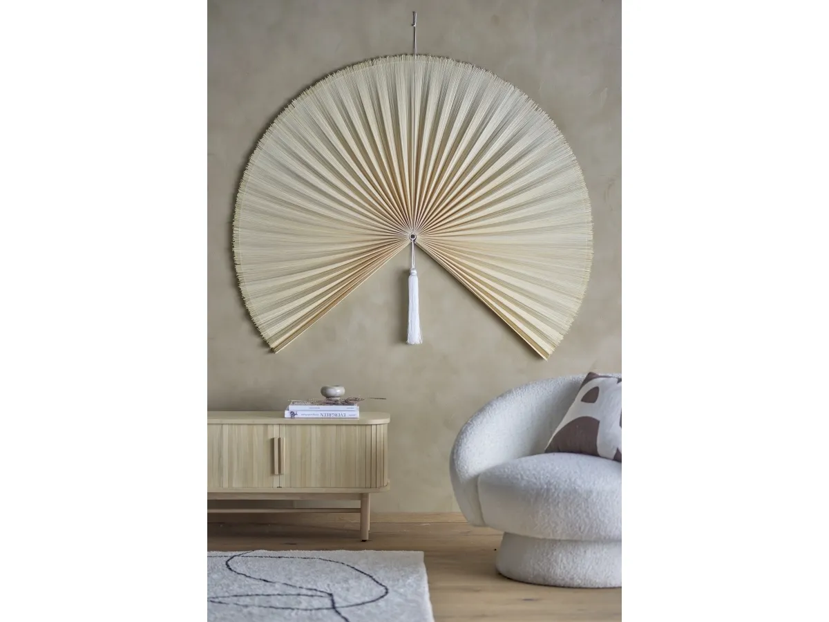 Jaime Vægdekorationen fra Bloomingville, fremstillet af bambus i en lys, beige farve, er en alsidig tilføjelse til ethvert rum. Den kan placeres i stuen, på kontoret, over sengen, eller hvor der ellers ønskes et stilfuldt indslag. Viften er prydet med en dekorativ kvast i bunden og har en hvid snor øverst for let ophængning.