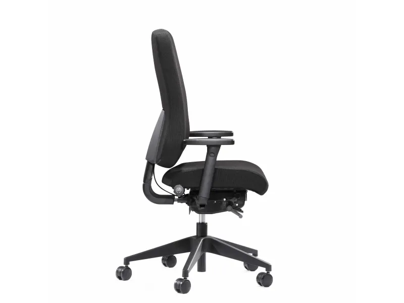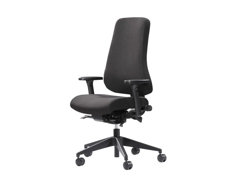 CE 03 er bl.a. med følgende funktioner: • Højdejusterbar høj ryg med lændesvaj og justerbar lændestøtte • Synkronmekanisme som vipper sæde og ryg sammen i et ergonomisk godt forhold. • Sædedybdejustering som sikrer bedst mulig støtte under baglårene. • Sædevippet sørger for det rette pres under baglårene og en åben siddevinkel • Justér hvor kontant lændestøtten skal være via en drejeknap • Vi anbefaler tilkøb af armlænssæt der vil aflaste skulder- og nakkeregion i det daglige arbejde, og kan nedbringe forekomsten af spændinger og smerter.