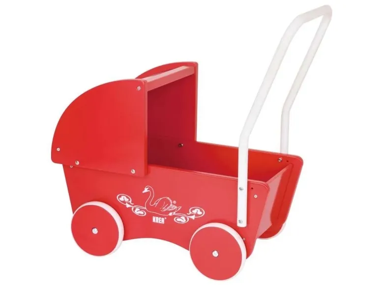 Lad dukkerne sove trygt i denne klassiske trædukkevogn fra KREA med et sødt svanemotiv på siderne, som mor måske husker fra sin egen barndom. Dukkevognen har et tidløst design med små gummibelagte hjul, der sikrer stabil og mere støjsvag kørsel. Dukkevognens mål: H: 42 x B: 22 x L: 44 cm. - Indvendige mål: L: 32 x B: 17 cm. Leveres usamlet, men er nem at samle. Maks. vægt: 25 kg. Fra 18 måneder. Krea Krea - fantasifuld leg med god samvittighed. Kombinationen af produkter der er udviklende og lærende for barnet, bearbejdningen af sunde materialer og en bevidsthed omkring forbrugernes krav og ønsker ses i alle Krea produkterne. Put din yndlingsdukke og lad den sove blødt i KREA's klassiske dukke sengetøj. Passer til den originale KREA dukkevogn. Materiale: Yderstof 100 % bomuld, Fyld 100% polyester.