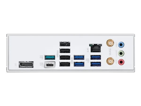 1 x DisplayPort 1 x USB-C 3.2 Gen2x2 1 x USB 3.2 Gen 2 4 x USB 3.2 Gen 1 4 x USB 2.0 1 x LAN (2.5Gigabit Ethernet) 1 x mikrofon - minijakk 1 x lydinnlinje - minijakk 1 x lydutlinje - minijakk 2 x antenne