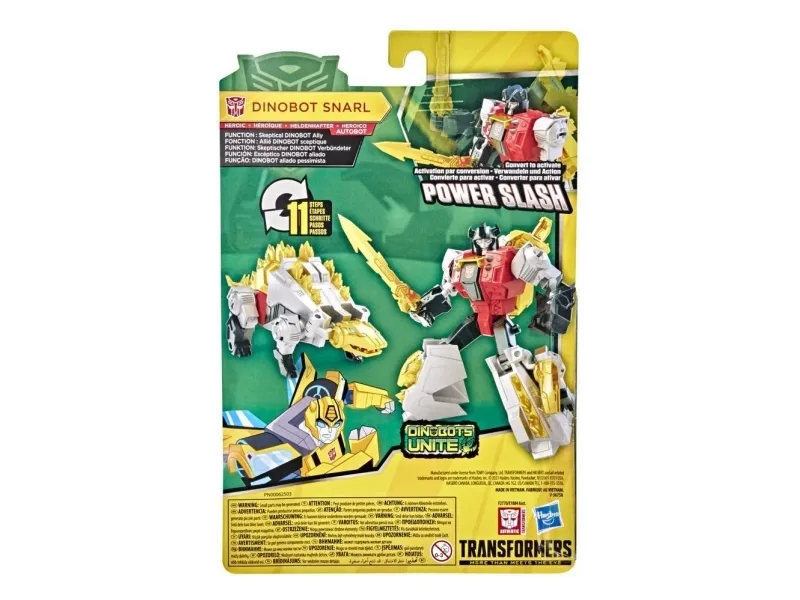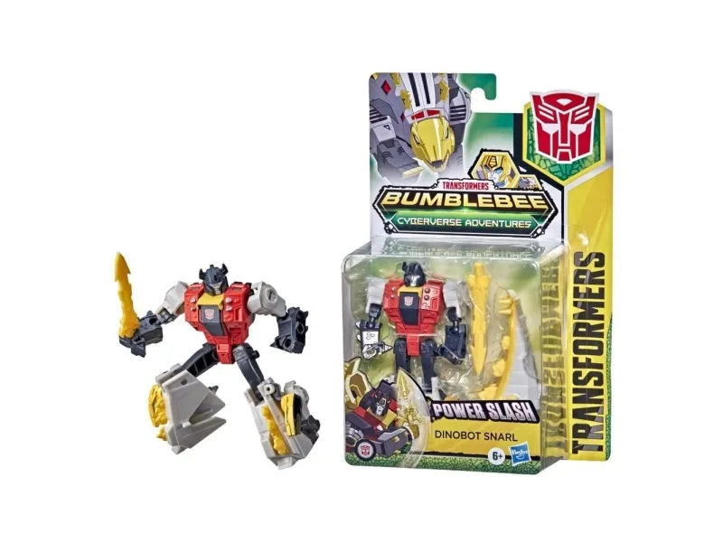 The war between heroic Autobots and evil Decepticons continues on the Bumblebee Cyberverse Adventures animated series! As a powerful new threat targets Cybertron, it is up to Grimlock and his new friends, the Dinobots, to unite and save the planet! Discover the unique powers and skills of each Bumblebee Cyberverse Adventures character, and see how those powers will be used to defend Cybertron… or threaten it. Easily convert and attack with Transformers Bumblebee Cyberverse Adventures Action Attackers toys! Simply convert Dinobot Snarl figure from stegosaurus to robot mode in 11 steps. The last conversion step activates the figure’s Power Slash move! Once converted, move can be repeated through easy reactivation steps. Collect other Action Attackers figures, each sold separately, to discover the signature attack moves of favorite characters from the Bumblebee Cyberverse Adventures series -- one of the best ways to introduce young kids and new fans to the exciting world of Transformers!Transformers Dinobot Snarl. Recommended age (min): 6 yr(s), Material: Plastic, Product colour: Multicolour. Weight: 68 g