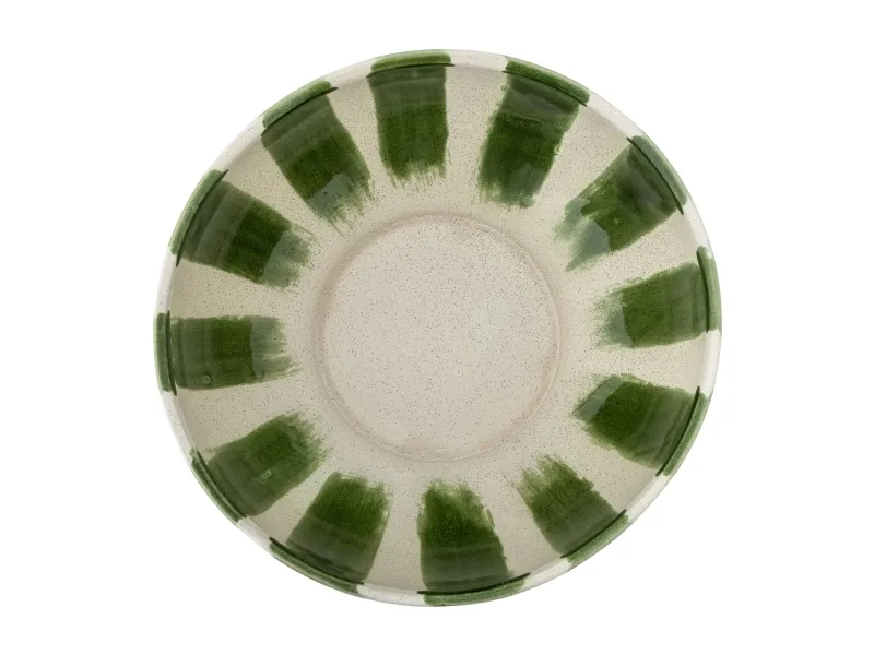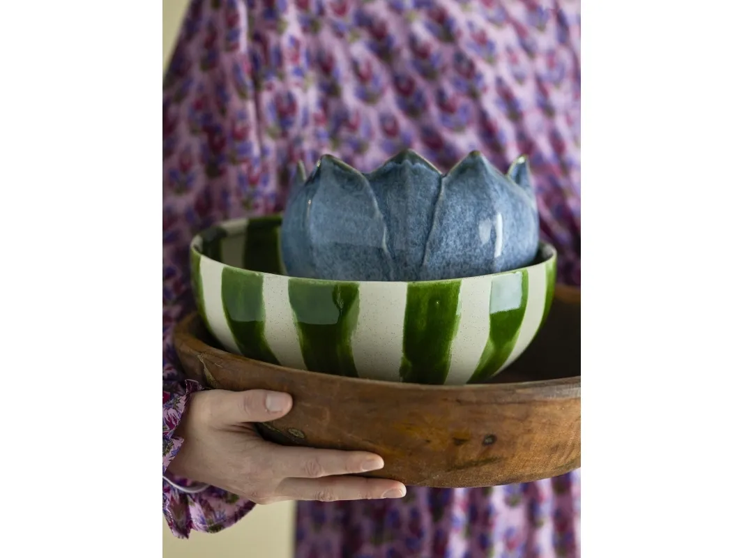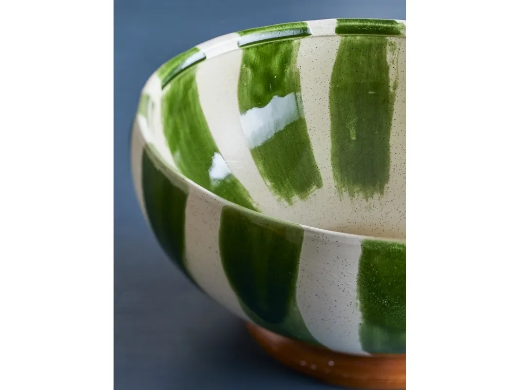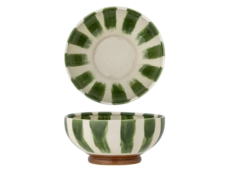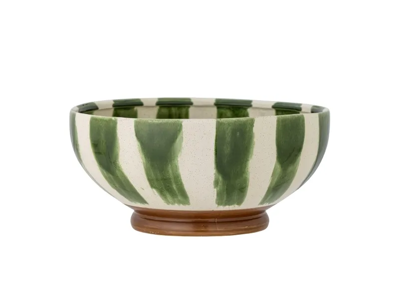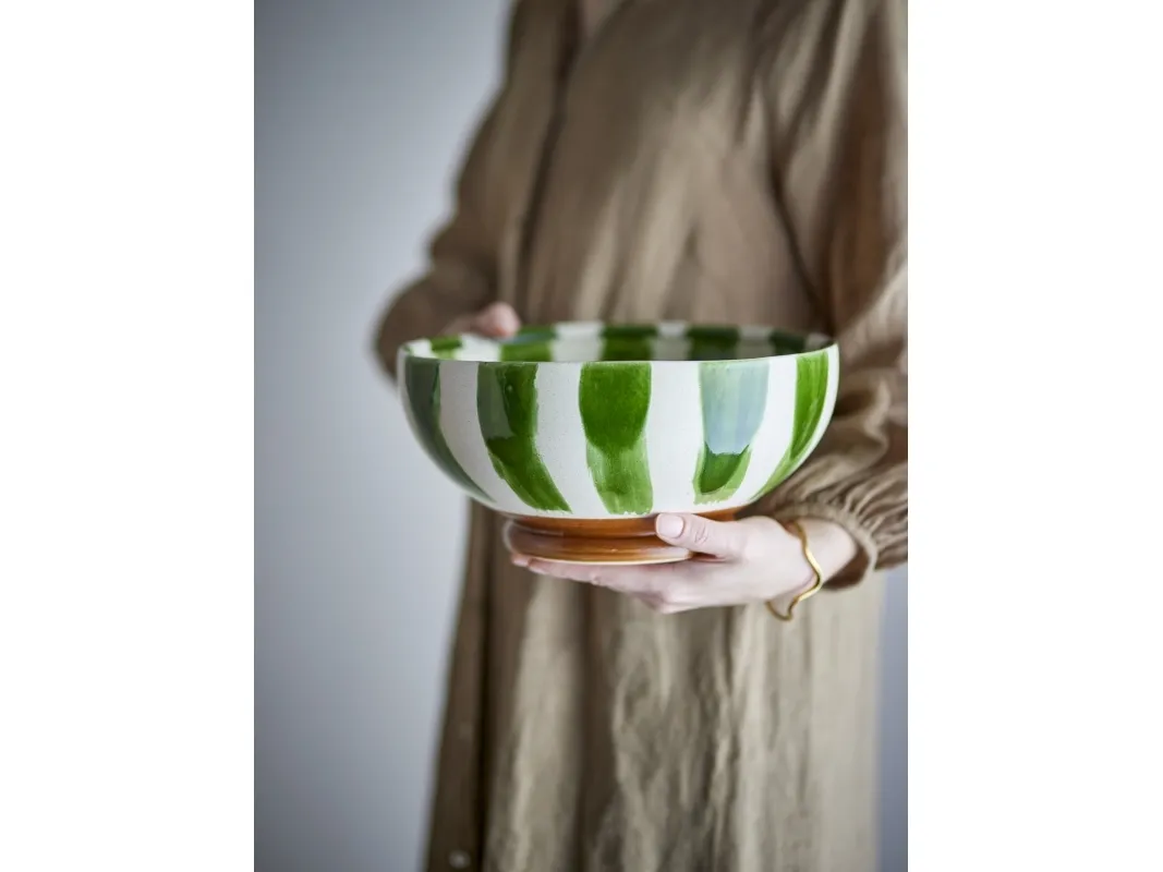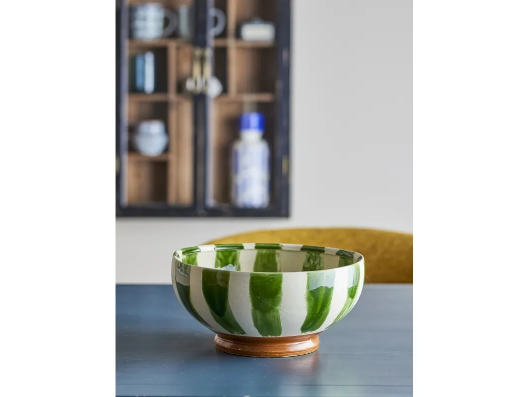 Shakti Skålen fra Creative Collection er lavet af stentøj med et afslappet håndmalet grønt stribet mønster og en komplementerende brun fod. Brug skålen til at dekorere dit hjem eller til servering. Variationer kan forekomme, da hver skål er dekoreret i hånden.