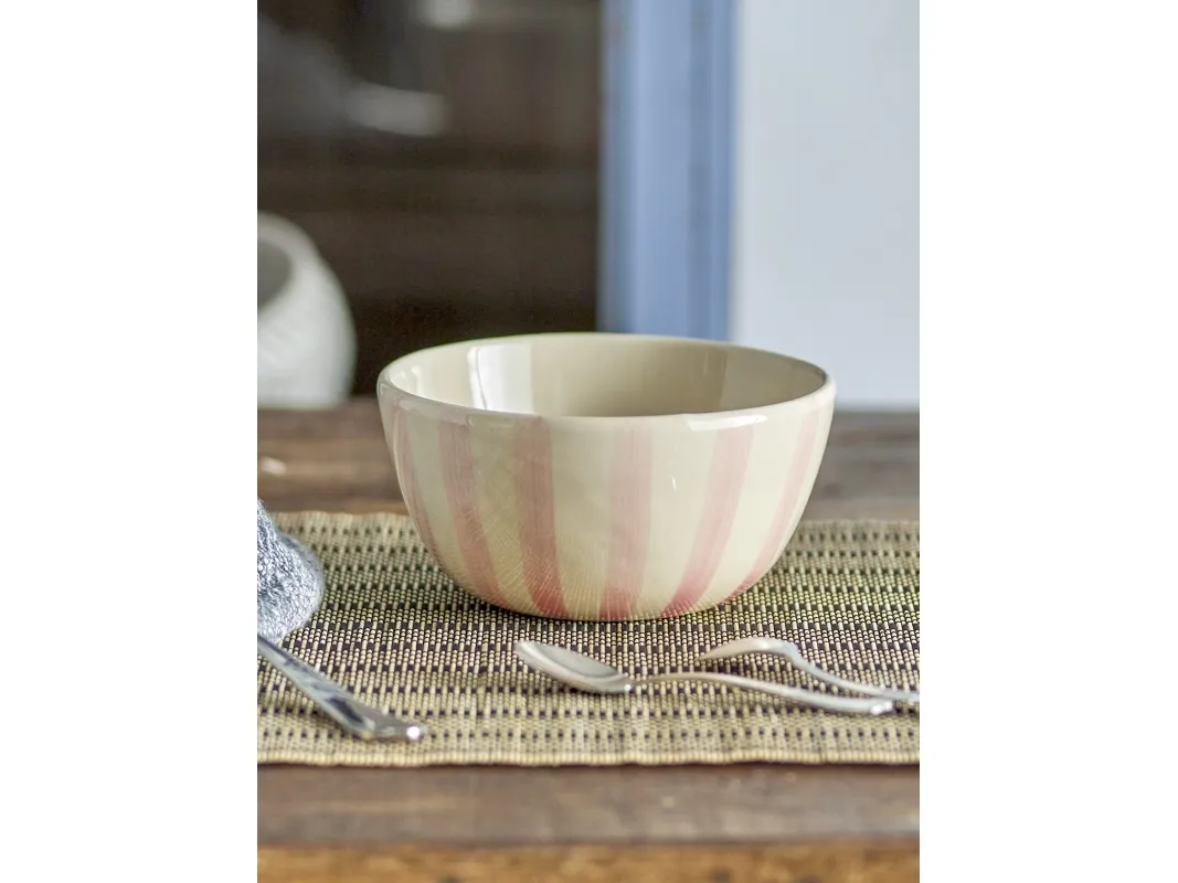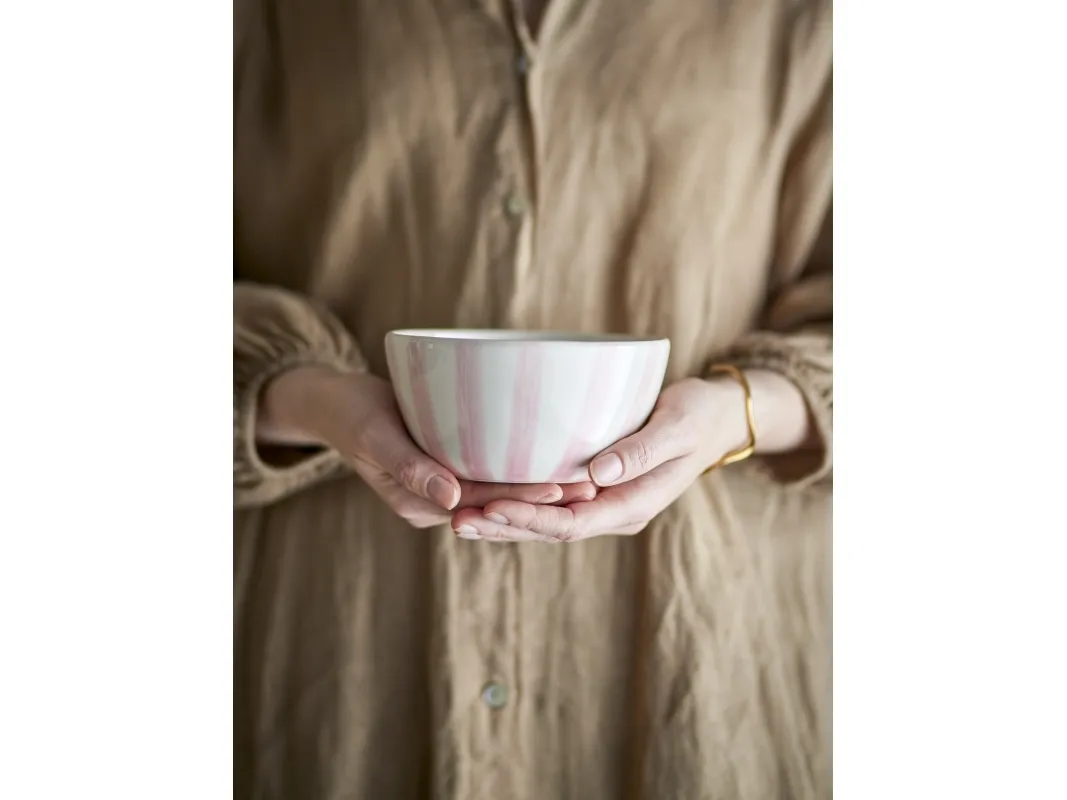 Begonia Skålen fra Creative Collection er lavet af stentøj og har et håndmalet stribet mønster i en støvet rosa nuance. Uanset om du bruger det til servering eller som et dekorativt element i dit rum, vil det helt sikkert tilføje et hyggeligt touch. Da hver skål er håndmalet, har hver skål sin egen unikke charme.