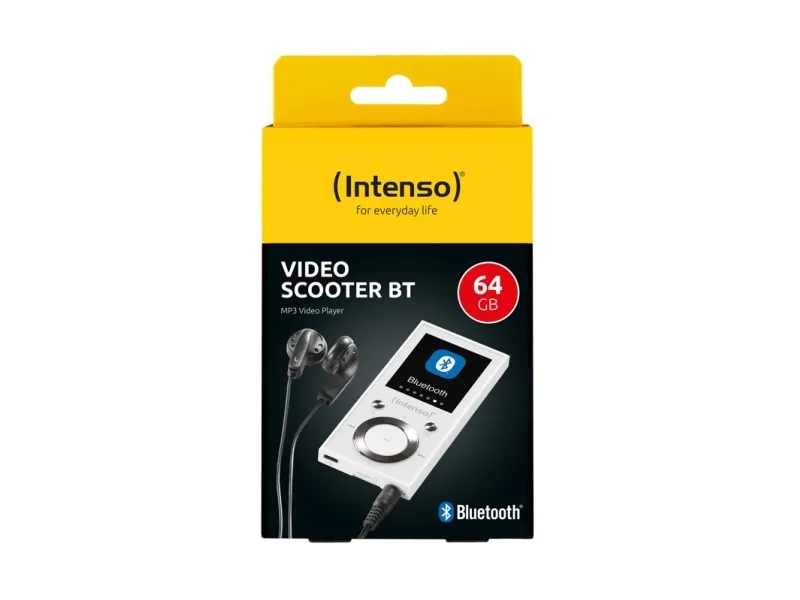 Its 18-hour battery life and lightweight 28 g design make it perfect for travel or everyday use. Complete with microSD card, USB-C cable, headphones and conversion software.Intenso Video Scooter BT MP3 Player 64 GB – Bluetooth 5.0, 1.8" LCD Display, USB-C, microSD Card Reader, 18 hrs Battery Life, Music & Video Player, White. Type: MP3 player. Product colour: White