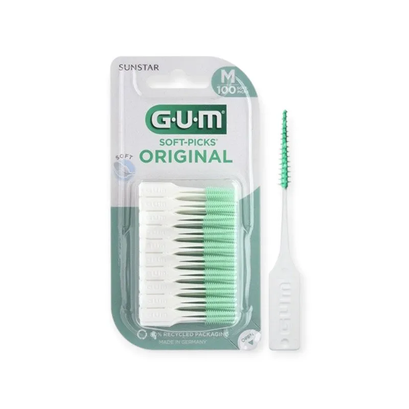 GUM Soft-Picks glider behageligt mellem tænderne for sikkert at fjerne plak og madrester.