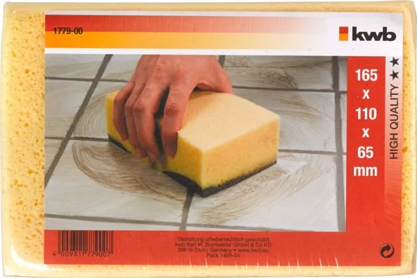 Universal- og flisesvamp 200 x 130 x 70 mm Groft, gul, af polyester, særligt godt sugende, til grundig rengøring af fliserne af tilovers lim- og fugematerialer