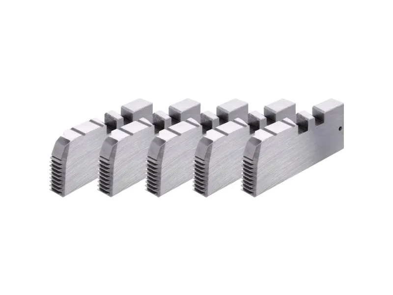 SKÆRESTEMPEL, SS, BSPT R, 2.1/2-4 Skærekæberne, SS BSPT R 2.1/2-4, til SUPERTRONIC skærer pålideligt BSPT gevind. Med sit arbejdsområde på 2.1/2-4 iht. en 10226. De eksklusive skærebager muliggør præcise og effektive resultater. I forbindelse med det passende SUPERTRONIC gevindskærehoved, kan BSPT R rørgevind på 2.1/2-4 tommer frembringes i stålrør iht. en 10226 (BSPT R).