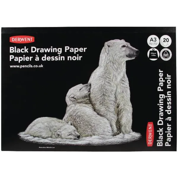 Derwent Black Drawing Paper A3 - 200gram - 20 ark