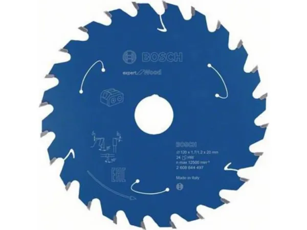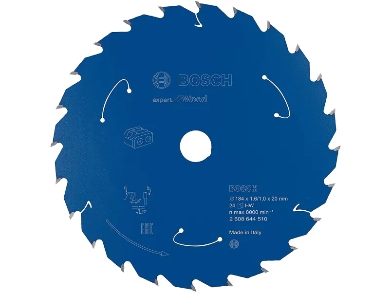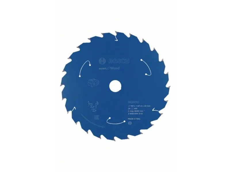 Batteri-rundsavsklinge Expert for Wood, 184 x 1,6/1 x 20, 24 tænder Ekstra tynde snit tilføj reducerer energibehov Aggressive tand vinkel sørger for glatte snit MicroteQ hårdmetal tænder sikrer en lang levetid og førsteklasses ydeevne ved savning af træ Med den rundsavsklinge Expert for Wood optimeres batteriernes batterilevetid. Det ekstra smalle snit og den aggressive tandvinkel reducerer friktion og materialefjernelse, så der er brug for mindre ydeevne til et ubesværet, rent save. Denne savklinge er op til 30 % tyndere end de normale Expert -savklinger, men har alligevel en førsteklasses levetid. MicroteQ Carbide-tænder sikrer en lang levetid og en førsteklasses ydeevne ved savning i træ. Den ideelle savklinge til alle typer træ og træmaterialer. Savklingen passer til alle gængse batteri-dykker- og håndrundsave samt batteri-metalsave. Rundsavsklinge Expert for Wood udmærker sig ved MicroteQ Carbide-tænder, der består af særligt finkornet og holdbart karbid af Bosch's egenproduktion og sørger for en førsteklasses levetid. Protection korrosionsbeskyttelsesbelægningen reducerer friktion, forhindrer rust og yder en vedvarende høj savning. Udvendig diameter mm: 184, boring mm: 20, skærebredde (b1) mm: 1,6, stampladetykkelse (b2) mm: 1,0, skærebredde (b1) mm / grundklingetykkelse (b2) mm: 1,6/1,0, tandantal: 24, tandform: WZ, maks. Rotationshastighed (omdr/min): 8000, snitresultat: 2, spånvinkel ° w1: 25, frivinkel ° w2: 10.
