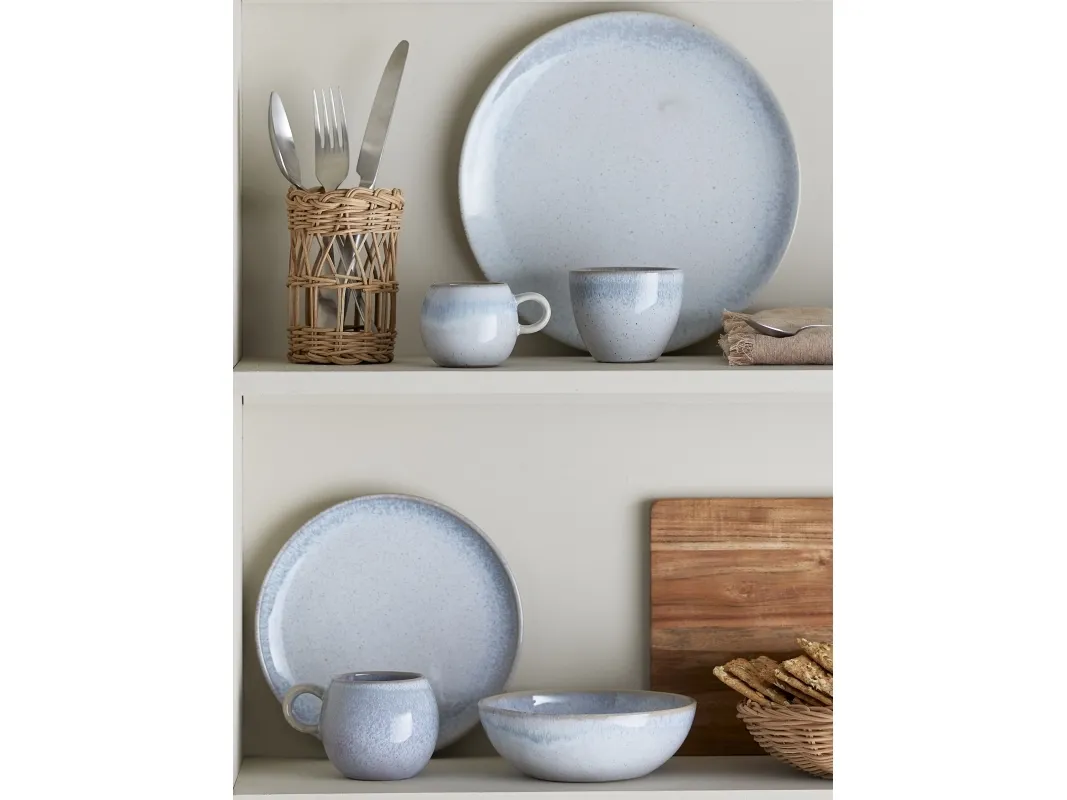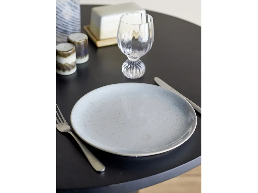 Paula Tallerkenen fra Bloomingville er lavet af stentøj og glaseret i en smuk lys glasur som blander sig med blå nuancer. Tallerkenens størrelse gør den ideel som middagstallerken. Glasurens natur kan medføre farvevariationer, hvilket gør hver tallerken unik.