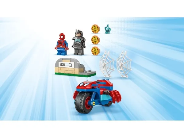 MINIFIGURER AV SPIDEY OG RHINO – inspirer unge byggere og Marvel-fans med en actionfylt leke som inneholder to minifigurer, en motorsykkel og en LEGO® startkloss som gir en rask og gøyal byggeprosess