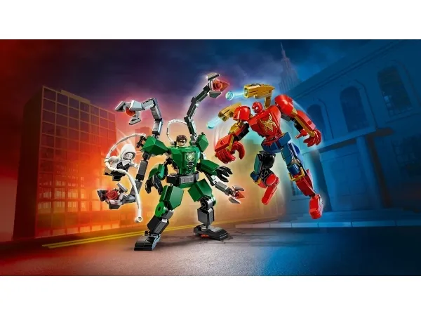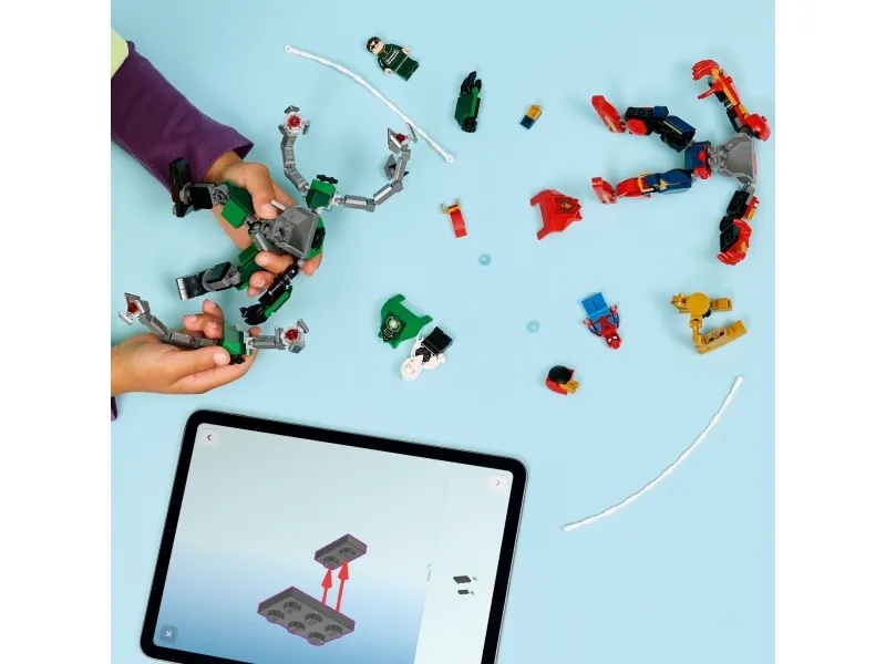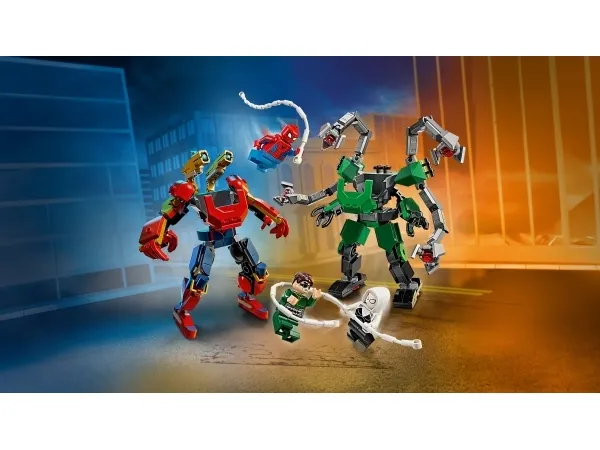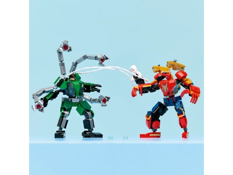 Begge robotene er fullt bevegelige, noe som gir maksimal dynamisk action, og de har hver sin cockpit med plass til en minifigurpilot. Spider-Man-roboten er i Iron Spider-stil og har to bevegelige, knappestyrte knotteskytere. Doc Ock-roboten har fire fullt bevegelige tentakler. Settet inkluderer også to nettau som er lette å feste til roboter og minifigurer, og Ghost Spider har slynger som kan festes til Doc Ock-robotens overkropp. Denne LEGO ǀ Marvel Spider-Man roboten er en flott gave, og med LEGO Builder appen kan barn bygge og føle mestring mens de zoomer, roterer i 3D og sporer framdriften sin med digitale instruksjoner. Byggesettet består av 315 deler.