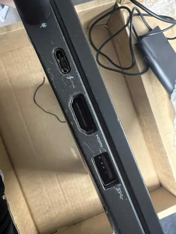 Det er kun skrammer på siden hvor diverse stik kan sættes i.