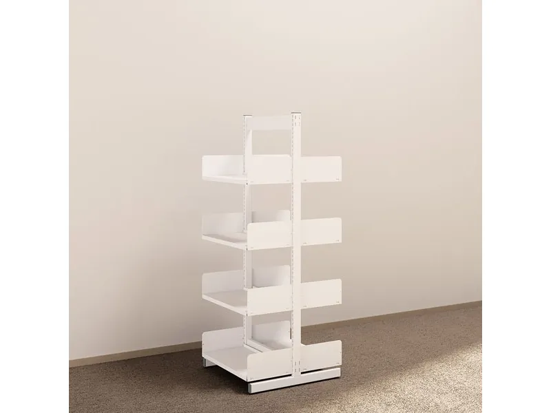 Komplet tosidig aLTI reol til placering på gulv, pulverlakeret hvid RAL9010. Dette er en komplet grundsekstion i højde 1900 mm, bredde 750 mm og dybde 300 mm.Reolen leveres komplet med to stk. T-fødder, mellemstykker til afstiving samt 5 justerbare hylder inkl. overkonsoller. Komplettere gerne med påbygningsektioner, og opbyg din reol i den bredde du ønsker.aLTI-hylden tilbydes som standard i hvid udførelse RAL 9010, men kan leveres i alle tænkelige RAL-farver mod farvetillæg. Kontakt os gerne.