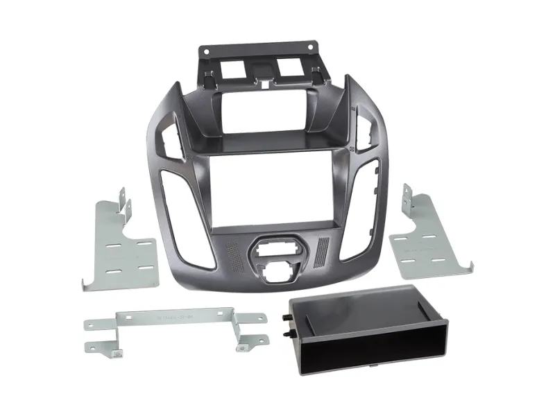 2-DIN facia-plade m/lomme til Ford Connect-display pegasus Facia Plate 2-DIN med opbevaringsrum til Ford gør det muligt at montere en DIN eller Double DIN eftermarkedsradio professionelt og præcist. Rammen i phoenix silver sikrer en perfekt pasform og bevarer kabinens udseende, så installationen ser original ud. Den er fremstillet i acv premium quality, og afhængigt af fabriksradioen kan det være nødvendigt med bilspecifikke kabler, antenneadaptere, ratbetjeningsinterfaces, kamerainterfaces eller aktive systemadaptere. Passer til: