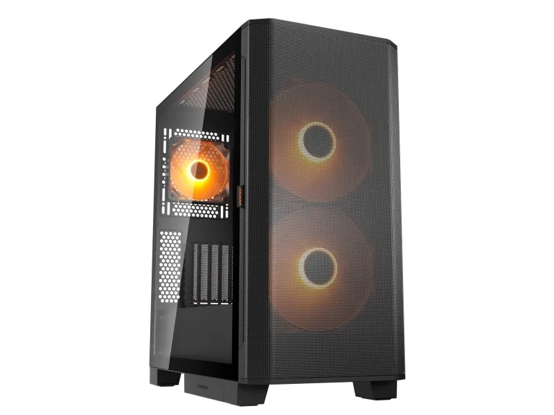 The Airface Flo RGB is compatible with Mini-ITX, Micro-ATX, ATX, CEB, and E-ATX motherboards, offering flexibility for various build configurations.COUGAR Midi Tower Case, Airface FLO, ARGB, Black. Form factor: Midi Tower, Type: PC, Product colour: Black. Front fans installed: 2x 180 mm, Front fans diameters supported: 180 mm, Rear fans installed: 1x 120 mm. Supported HDD sizes: 2.5,3.5". Width: 240 mm, Depth: 480 mm, Height: 509 mm. Package width: 585 mm, Package depth: 586 mm, Package height: 310 mm