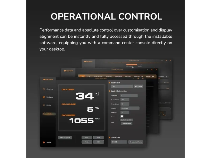 Operational Control Performance data and absolute control over customisation and display alignment can be instantly and fully accessed through the installable software, equipping you with a command center console directly on your desktop.
