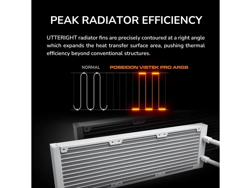 Peak Radiator Efficiency UTTERIGHT radiator fins are precisely contoured at a right angle which expands the heat transfer surface area, pushing thermal efficiency beyond conventional structures.