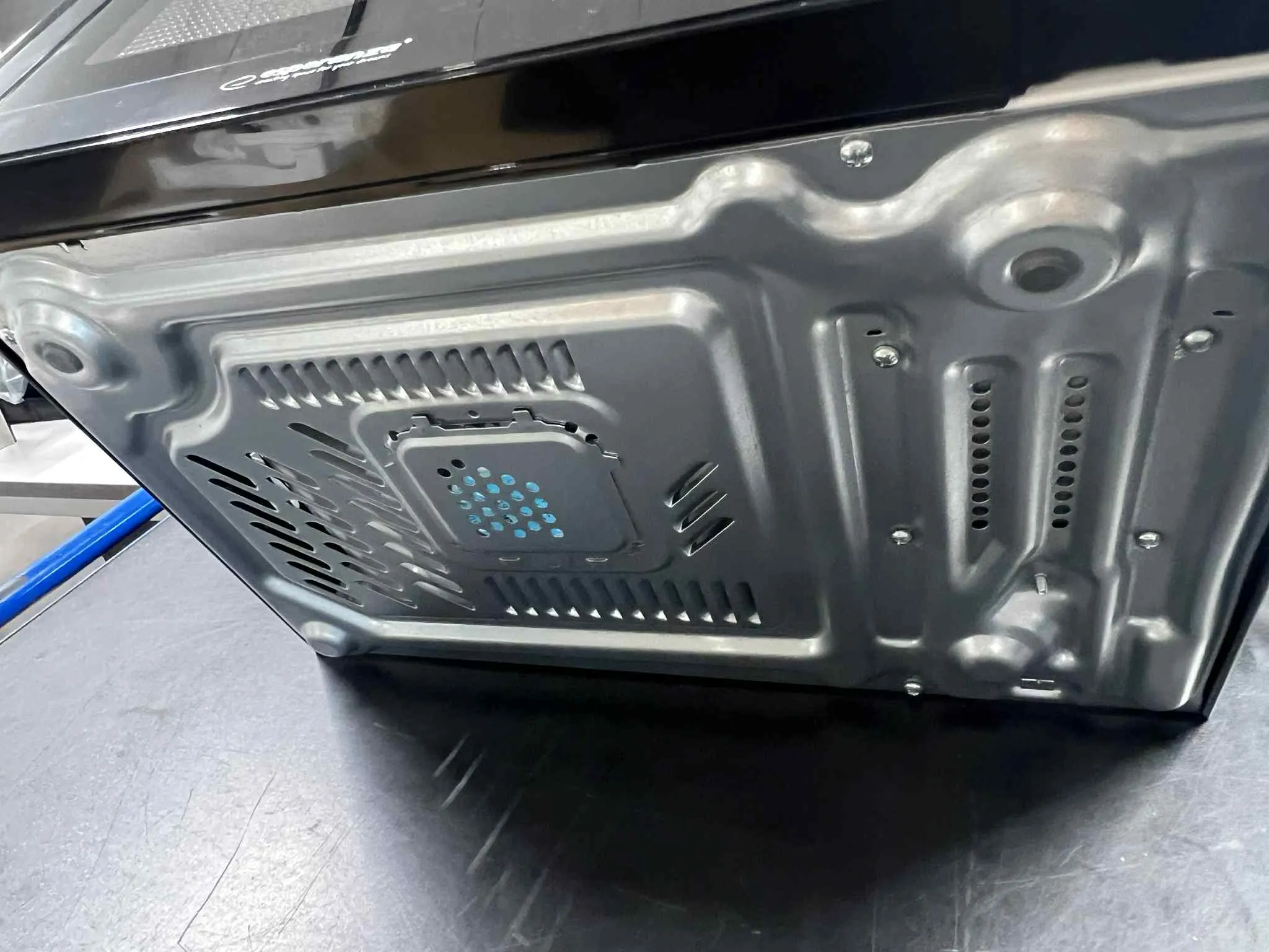 bundpladen hvor fødderne sidder er bulet, så den står lidt skævt.