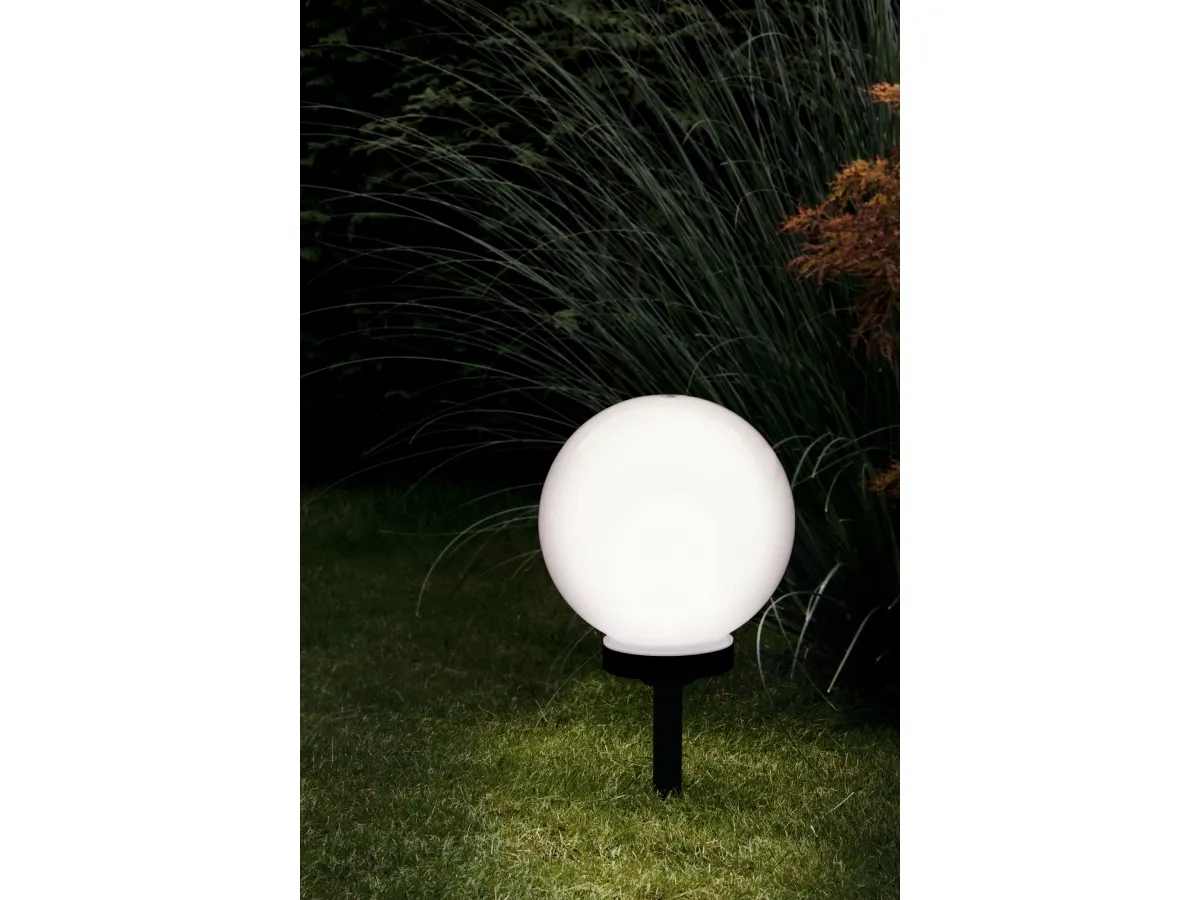 Denne solkugle begejstrer med sin praktiske jordspyd og skaber elegante lyseffekter i din have. Den har en vippekontakt og er udstyret med et batteri. Denne solkugle inspirerer med sit praktiske jordspyd og giver elegante lysaccenter i din have. Den har en vippekontakt og er udstyret med et genopladeligt batteri.