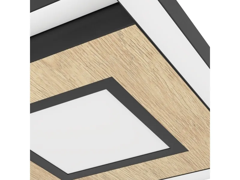 LED-loftlampen "MARINELLO" kombinerer moderne design med funktionalitet og fleksibilitet. Den elegante kombination af sort finish og trædetaljer skaber et varmt, men samtidig tidssvarende udseende. Med CCT-teknologien kan lysfarven justeres efter behov, fra varmt til køligt hvidt lys, hvilket sikrer den perfekte belysning til enhver lejlighed. Dette produkt indeholder lyskilder med energieffektivitetsklasse: F
