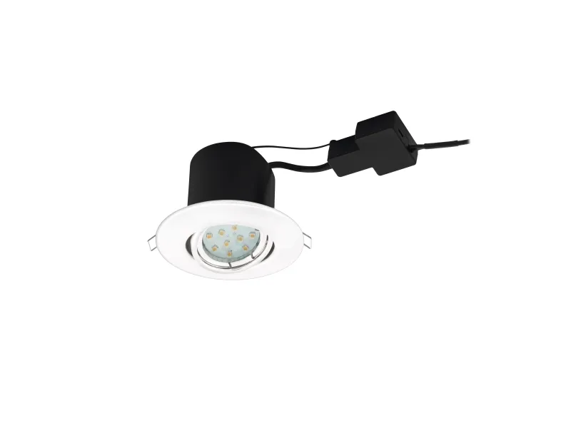 Denne indbygningslampe fra serien PINEDA er fremstillet af hvidt stål. Den har beskyttelsesisolering og er udstyret med en LED-pære. EGLO PENETO 2 LED INDBYGNINGSSPOT i hvid kipbar med 5W GU10 LED, 400LM, ø108mm.