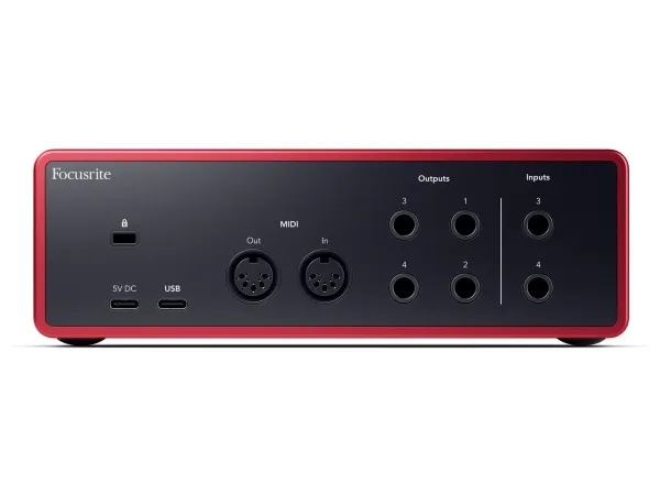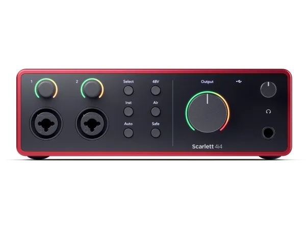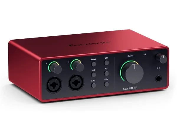 If you need help at any point you can reach out to our award-winning global support team. We work 24 hours a day, 7 days a week, 365 days a year, so you can too – if you want.Focusrite Scarlett 4i4. Form factor: Desktop. Device interface: USB. Microphone preamp gain: 56 dB, Microphone preamp input level (max): 9 dBu, Microphone preamp input impedance: 3000 Ω. Audio A/D Converter (ADC): 24-bit/192kHz, Supported sample rates: 44.1,48,88.2,96,176.4,192 kHz. Power source: USB