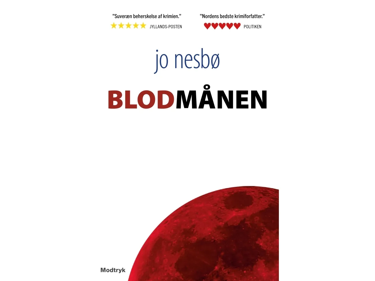 Harry Hole er taget til Los Angeles for at drikke sig ihjel. Han har fået husly, selskab og et skræddersyet jakkesæt hos den aldrende skuespiller Lucille til gengæld for at have hjulpet hende med at flygte fra en gæld på en million dollar til et narkokartel. I Oslo er to unge kvinder forsvundet, og lederen af Drabsafdelingen, Katrine Bratt, har brug for sin gamle kollega og Norges fremmeste ekspert i seriemord, men for hendes chefer er det udelukket at tilkalde Harry Hole. Da en mistænkt vil hyre Harry som privatdetektiv i den sag, Bratt efterforsker, havner Harry alligevel i Oslo, for klienten er parat til at betale en million dollar for at blive renset, nok til at løse Lucille fra gælden til narkokartellet. Harry Hole samler et efterforskningshold bestående af en kokainsælgende barndomsven, en korrupt politimand og en kræftsyg psykolog. De har ti dage til at opklare sagen. "Nesbø fortæller helt som sædvanlig en barsk historie med suveræn beherskelse af krimiens genrekonventioner. Der er overraskelser og tvist på omtrent hver eneste side, alt imens livet i det norske velfærdssamfund får både sviende svirp og kærlige kærtegn." - Jyllands-Posten, 5 stjerner "Blodmånen cementerer atter Nesbø som Nordens bedste krimiforfatter." - Politiken, 5 hjerter "Suveræn spændingsmester … en Harry Hole-krimi af højeste klasse." - VG "Nesbøs styrke som krimiforfatter er netop, at han tager fat, både i sprog, karakterer og plot. Han har tempo, energi og selvsikkerhed, som gør dette til en eventyrlig krimi. Ren underholdning." - Dagbladet "Så har han gjort det igen. Harry Hole den 13. er mere Harry Hole end nogensinde før. Og aldrig har han været mere rå (…) En bautasten i genren." - Nettavisen "Jo Nesbøs nye Harry Hole-bog har et drive som forlanger færdiglæsning." - NRK "Et moderne folkeeventyr. Blodmånen er den 13. roman i Jo Nesbøs serie om Harry Hole. Det viser sig å være et lykketal. (…) Jo Nesbø har en sans for detaljer som, udover at være underholdende i sig selv, gør handlingen særlig." - Dagsavisen