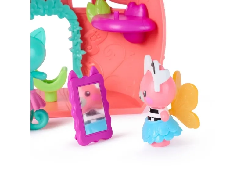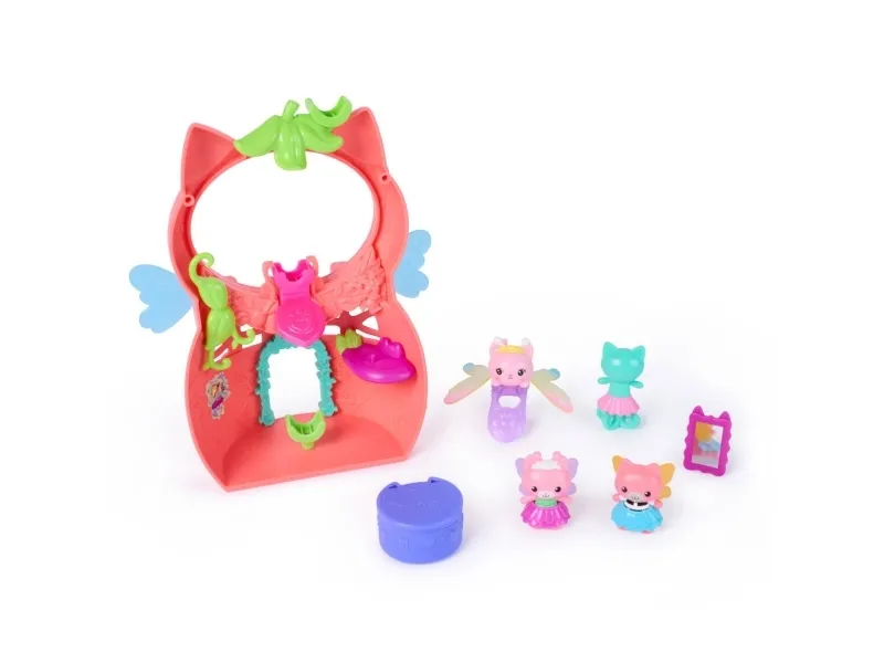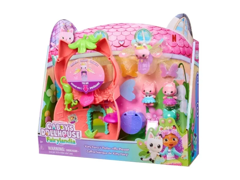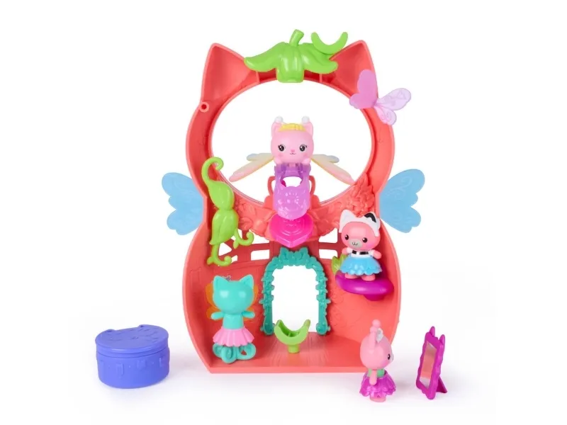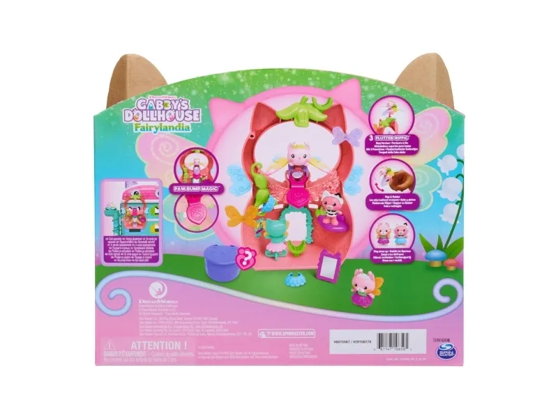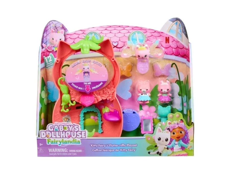 Gå inn i Gabbys magiske verden med Kitty Fairy sin Vingefantastiske Lekesett fra Gabbys Dukkehus Fairylandia. Dette herlige 20 cm-lekesettet har en eksklusiv regnbuevinget Kitty Fairy-ring, som vil sjarmere unge fans mens de bærer den og vifter med fingeren for vingemoro. Dette lekesettet kan festes til alle Gabbys dukkehus, og gir uendelige muligheter for late-lek og kreative eventyr med disse herlige læringslekene. Med 12 deler, Pote-Dultemagi for morsom fikleleking og utkledningstilbehør til de 2 kattebjørnene, kan barn nyte endeløse historiefortellingseventyr. Pakk ut Dukkehustilbudet, akkurat som Gabby gjør i serien, for å finne et overraskelsestilbehør, og skann deretter QR-koden for å låse opp en overraskelse i Gabbys Dukkehus-app. Dette settet er en morsom måte å inspirere late-lek på og inviterer til mjau-fantastiske oppdagelser med disse bedårende Gabby-kattlekene for barn. Gabbys dukkehusleker er purrfekte gaver for barn som vil gjenoppleve kjære øyeblikk fra Gabby-filmen og skape nye eventyr i Gabbys dukkehus, med småbarnsleker som dukkehusmøbler og tilbehør, hennes mjau-fantastiske kattevenner og fensastiske havfrueleker for uendelige timer med kattefantastiske eventyr (Selges separat).