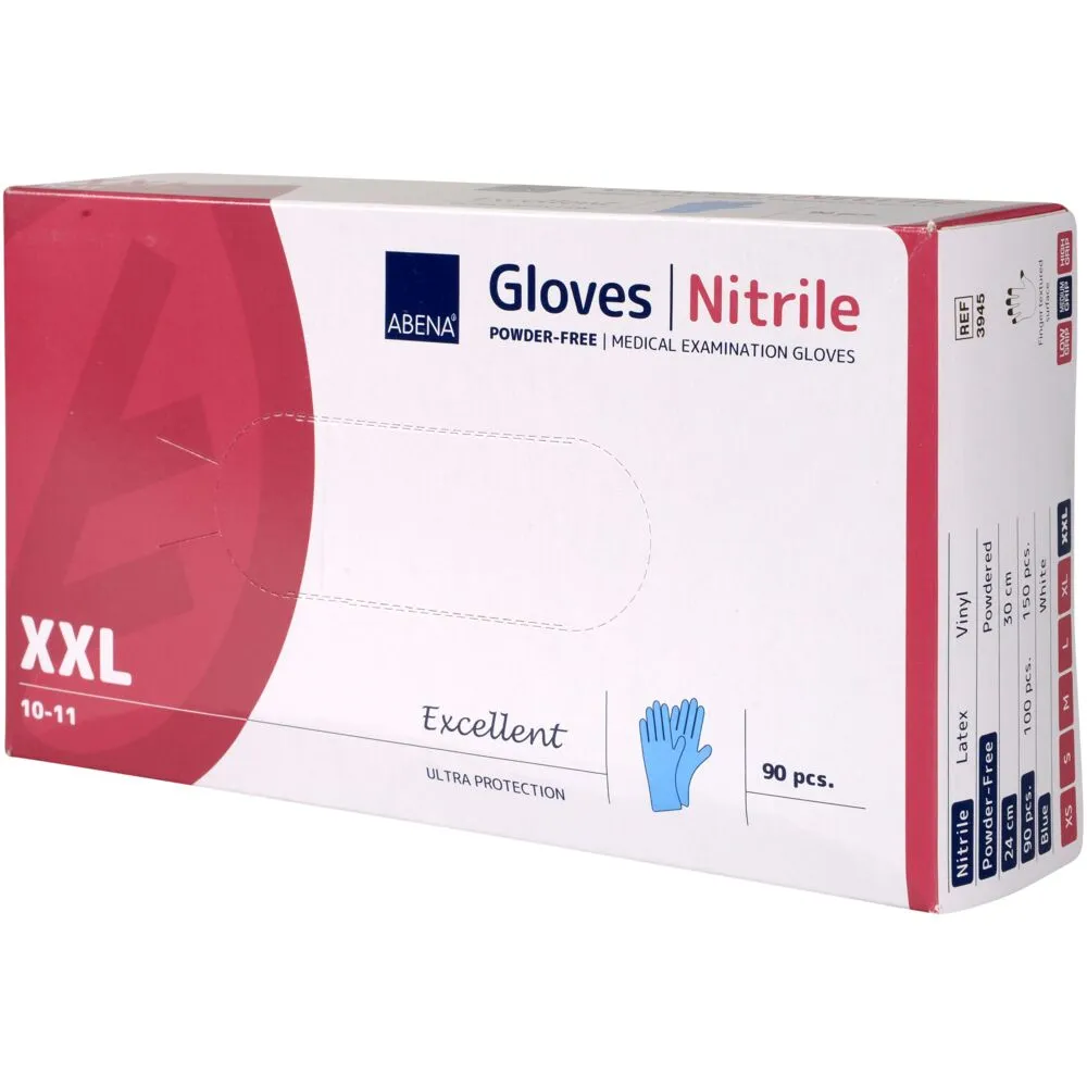 Undersøkelseshanske, ABENA Excellent, XXL, blå, nitril, pudderfri - (90 stk.)