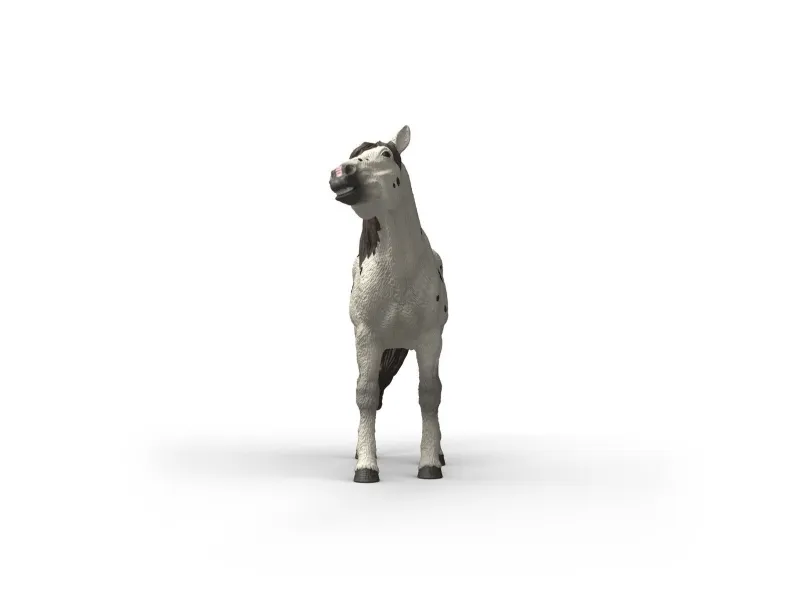 Knabstruper-vallaken er spesielt vakkert mønstret med sin snøhvite pels med svarte flekker. Dermed gjør den alltid en flott figur når man er ute og rir. Men for øyeblikket har den noe helt annet i tankene. Den strekker den lange halsen framover og hever mulen mens den værer. Kanskje vil den gjøre kur til den pene knabstruper-hoppa?