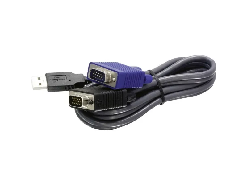 This 2-in-1 USB KVM cables are designed to connect a USB computer to the TRENDnet TK-803R and TK-1603R KVM switches. These cables consist of a USB keyboard/mouse cable and monitor cable bonded into a single device.