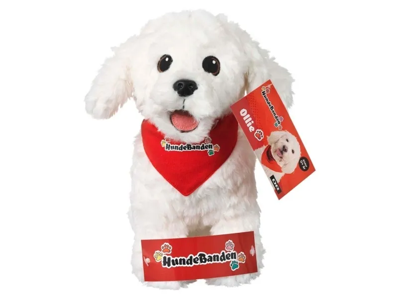 Mød Ollie – Den lalleglade fra HundeBanden Ollie er den største ja-hat! Han er altid oppe at køre, så det både er sjovt, charmerende og lidt for meget. Ollie elsker mad og vil smage på alt, og så ELSKER han at blive nusset. Ollie er en af stjernerne fra DR Ramasjangs populære serie HundeBanden. Serien følger fem rigtige hunde på hverdagseventyr sammen med børn – fra fodboldbanen til spejder, frisøren og besøg hos bedsteforældre. Med sin glade og energiske personlighed bliver Ollie hurtigt en favorit hos børn, der elsker sjov og leg. Denne bløde plysfigur bringer den samme charme og livsglæde ind i børneværelset, som Ollie gør på skærmen. Perfekt til kram, leg og hyggestunder!